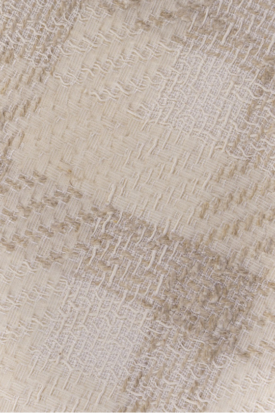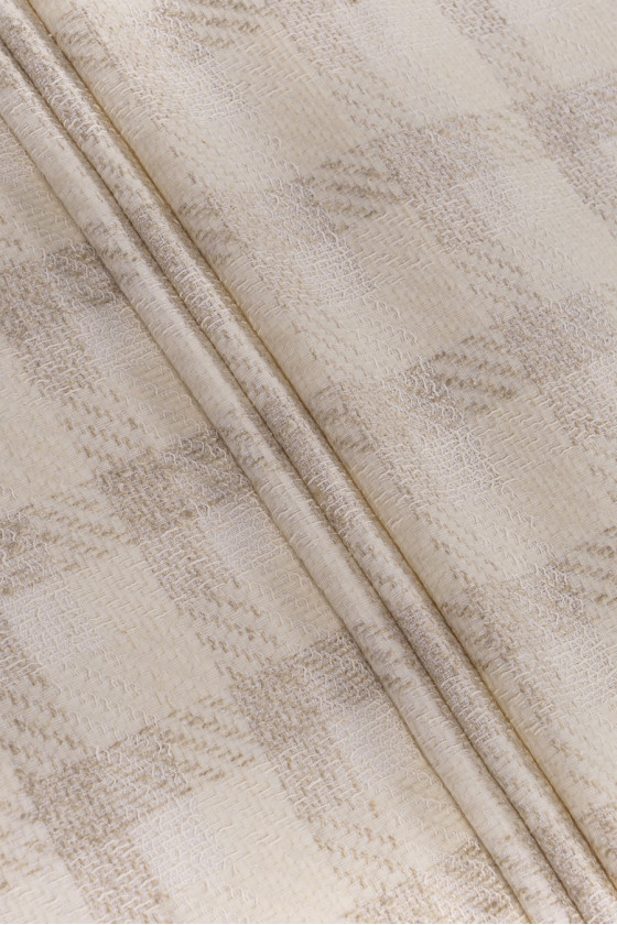 Tessuto costume chanel italiano con motivo check (8 cm) nei toni del beige freddo e dell'ecrù.