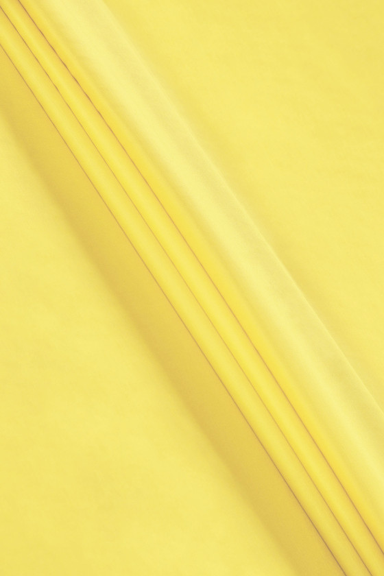 Tessuto in cotone italiano con l'aggiunta di elastan di colore giallo. Un tessuto elastico di medio spessore e una trama liscia e leggermente lucida destinato alla cucitura di un abito, di una gonna o di un pantalone. Tessuto naturale di ottima qualità, l'aggiunta di elastan lo rende più comodo da usare e si stropiccia meno. Un tessuto insostituibile in primavera e in estate.