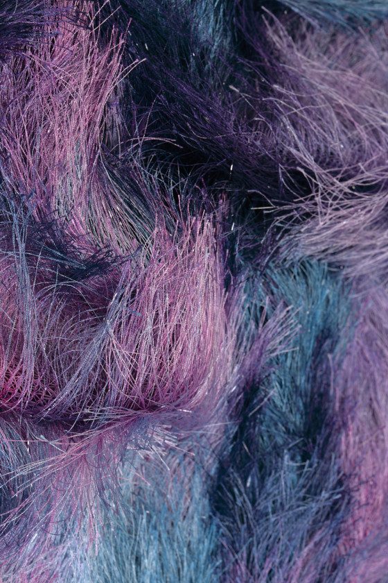 Tessuto da sera italiano a forma di rete con nappe fittamente cucite in blu, blu navy, viola e rosa e nastri lucidi. I bellissimi colori delle nappe creano un effetto sfumato, permettendoti di creare una creazione unica. Il tessuto è leggermente trasparente, elastico, morbido e leggero. La rete è larga 145 cm, le frange sono larghe 135 cm e lunghe 6 cm.