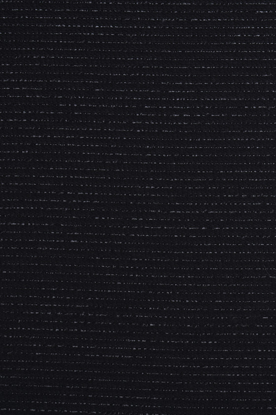 Tessuto per costume italiano autunno-inverno di colore nero intrecciato in lana naturale con una miscela di viscosa e acrilico. Il tessuto ha cuciture orizzontali grigie che creano delicate strisce larghe 1,5 cm. La combinazione di fibre naturali con fibre sintetiche rende il tessuto caldo, ma allo stesso tempo resistente e durevole. Una proposta perfetta per cucire un costume, una giacca o un vestito autunnale.