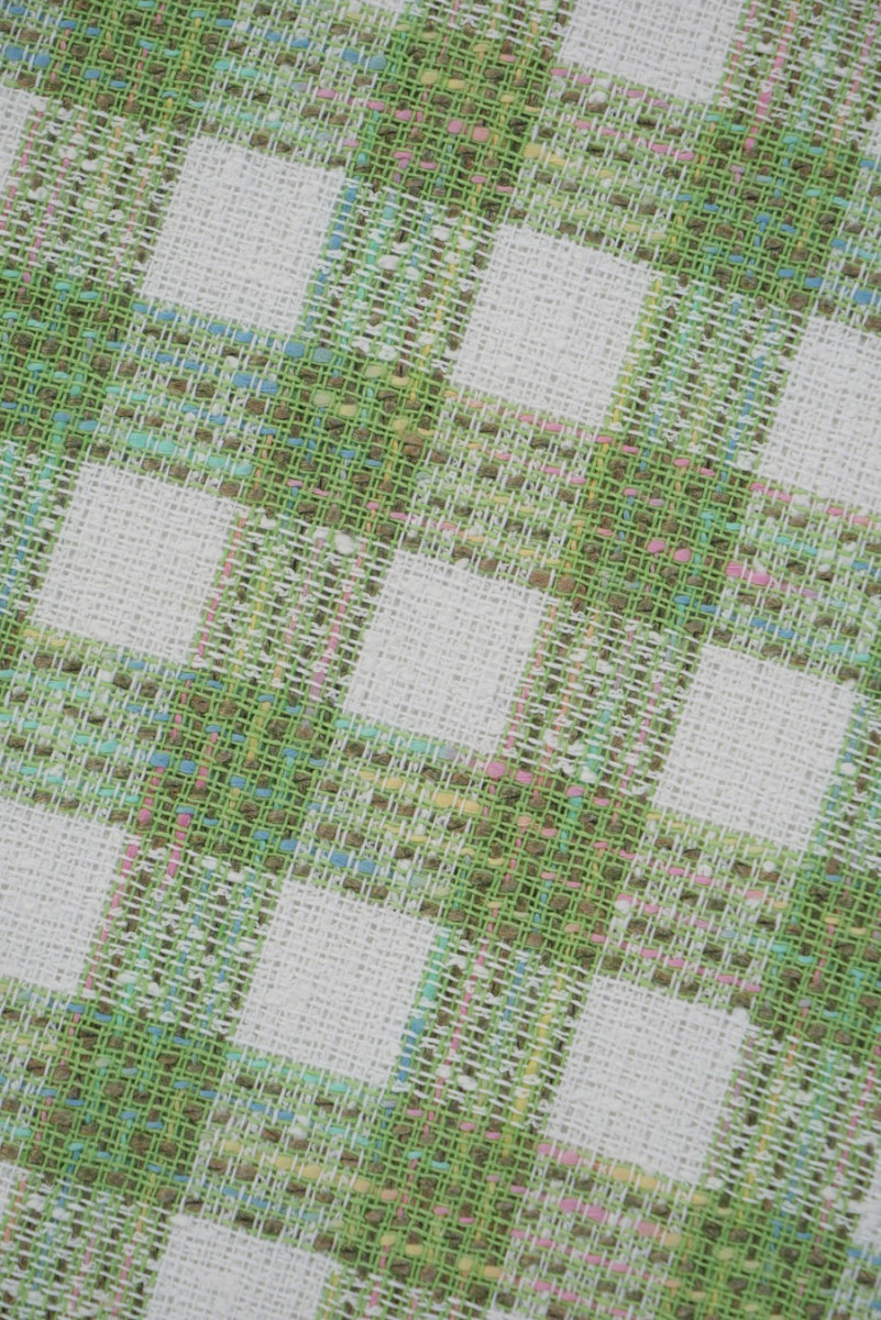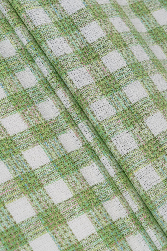 Tessuto Chanel a quadri bianchi e verdi
