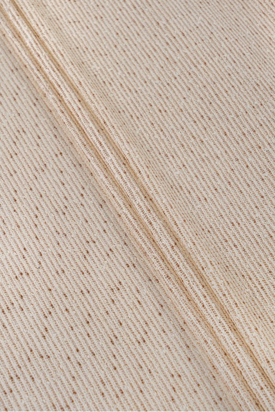 Tessuto per costumi Chanel a trama larga destinato ad abiti di transizione, un melange di beige e marrone.