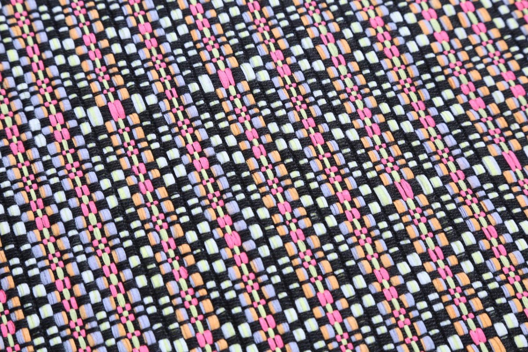 Tessuto per costume chanel multicolore con intreccio originale. Infatti, il colore rosa è molto intenso. Tessuto non elastico. Perfetto per giacche e abiti.
