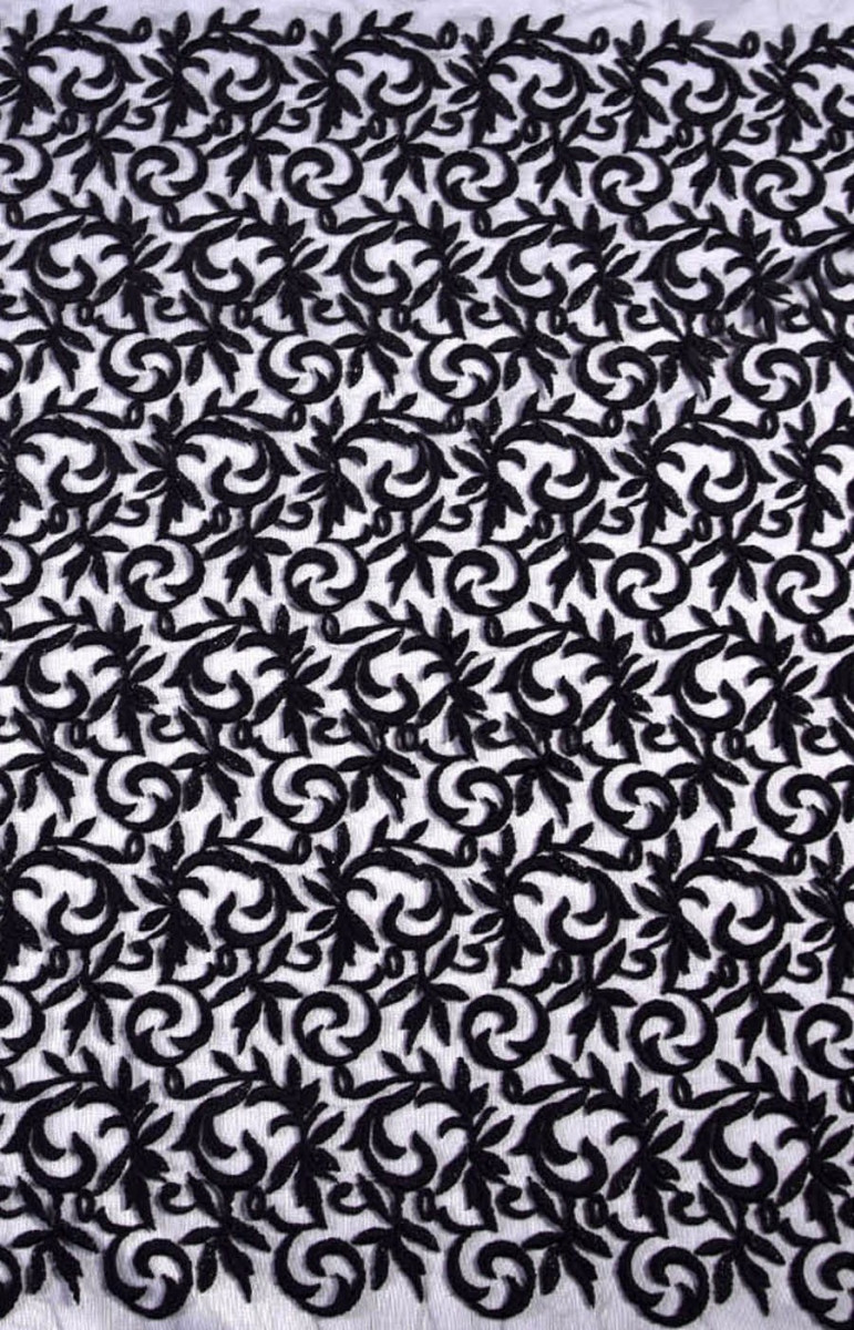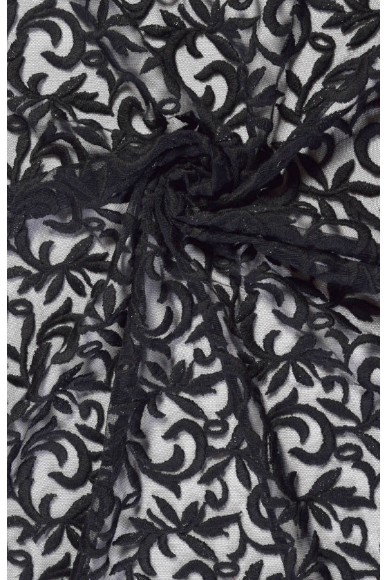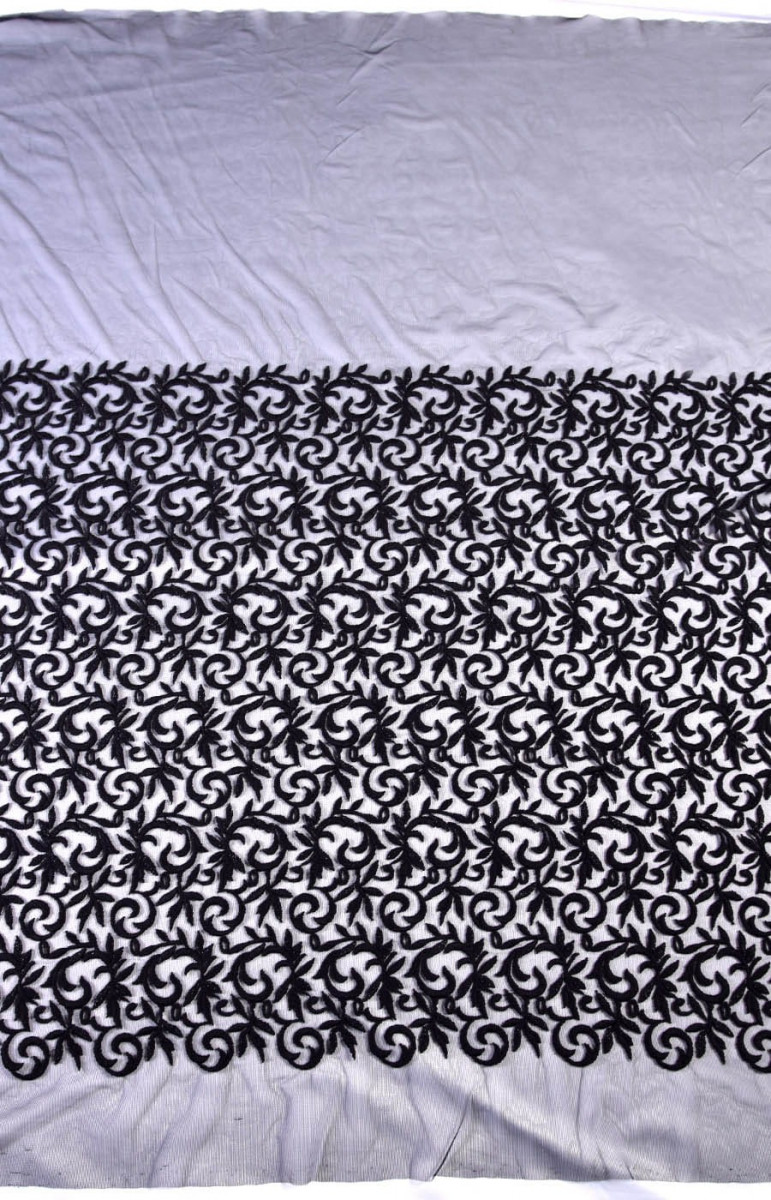 Un'interessante proposta di tulle con ricami. Ricamo spesso e carnoso. Il tessuto è perfetto per abiti da sera o camicette. La larghezza del ricamo è di circa 82 cm.