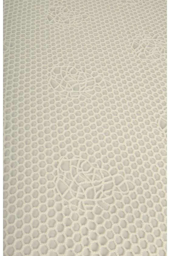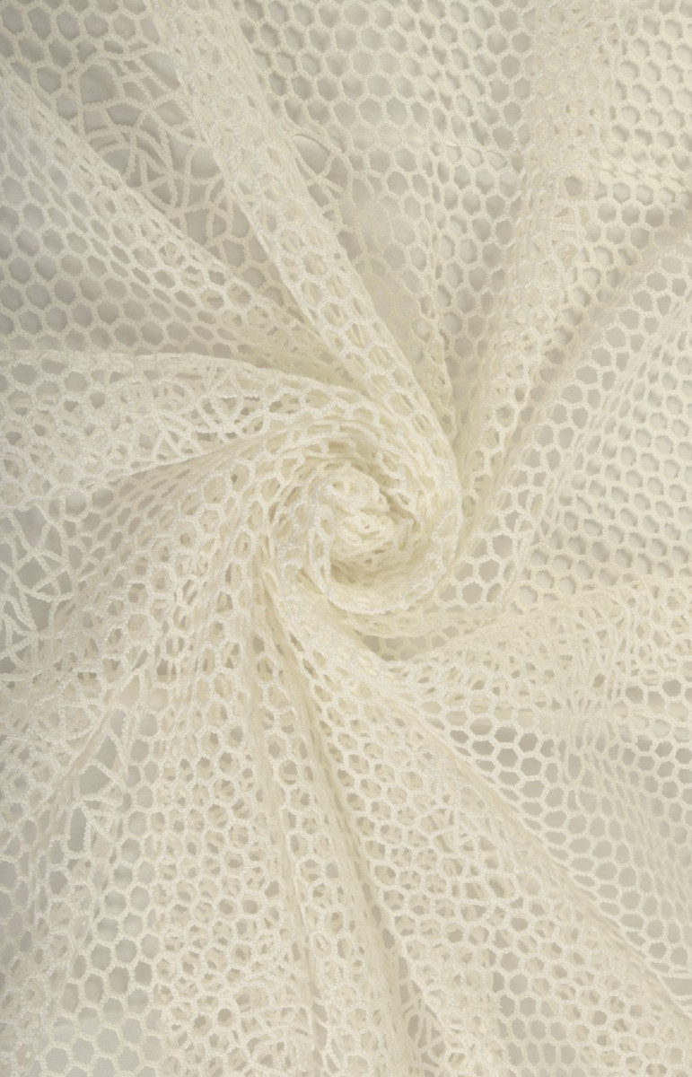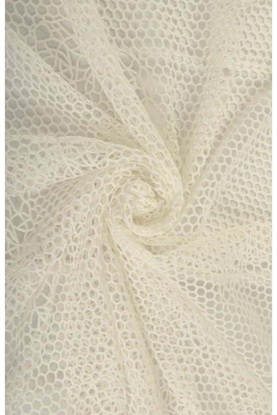 Originale rete di pizzo in colore écru, tessuta in viscosa. Può essere utilizzato per cucire abiti retrò, camicette o scialli.