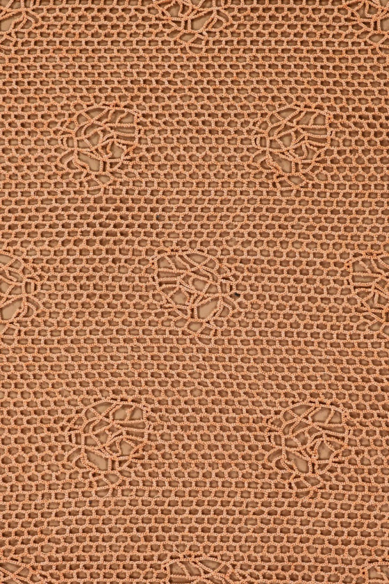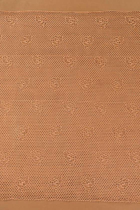 Pizzo guipure con struttura a rete in arancio salmone. Perfetto per abiti traforati o camicette.