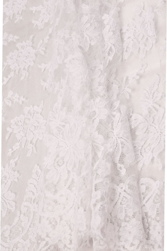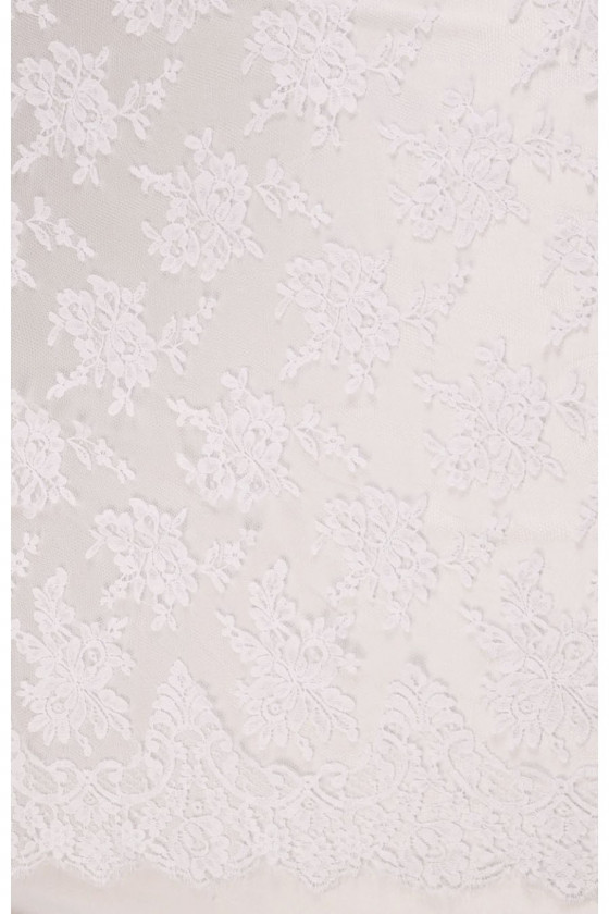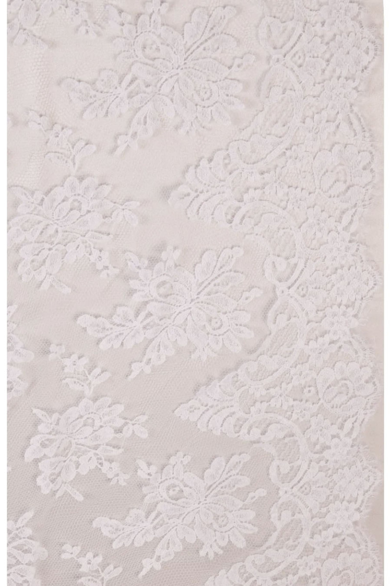 L'ultimo coupon di pizzo nuziale da 125 cm * 90 cm con un classico, denso motivo di colore crema bianco, rifinito con un dente su entrambi i lati. Il pizzo è delicato, morbido al tatto.