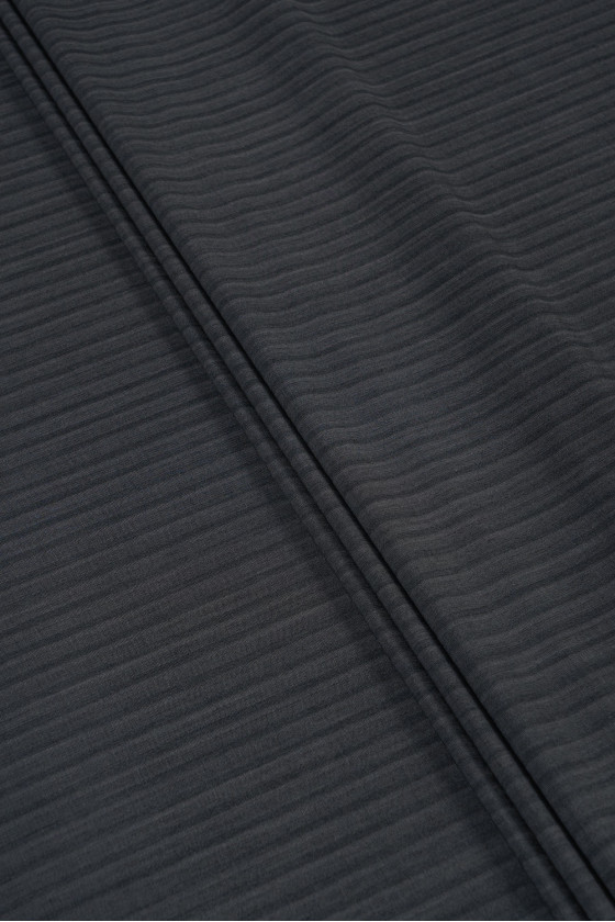 Costume italiano in lana a righe, largo 2 cm in nero e grigio - bicolore. Tessuto morbido, carnoso, non elastico.