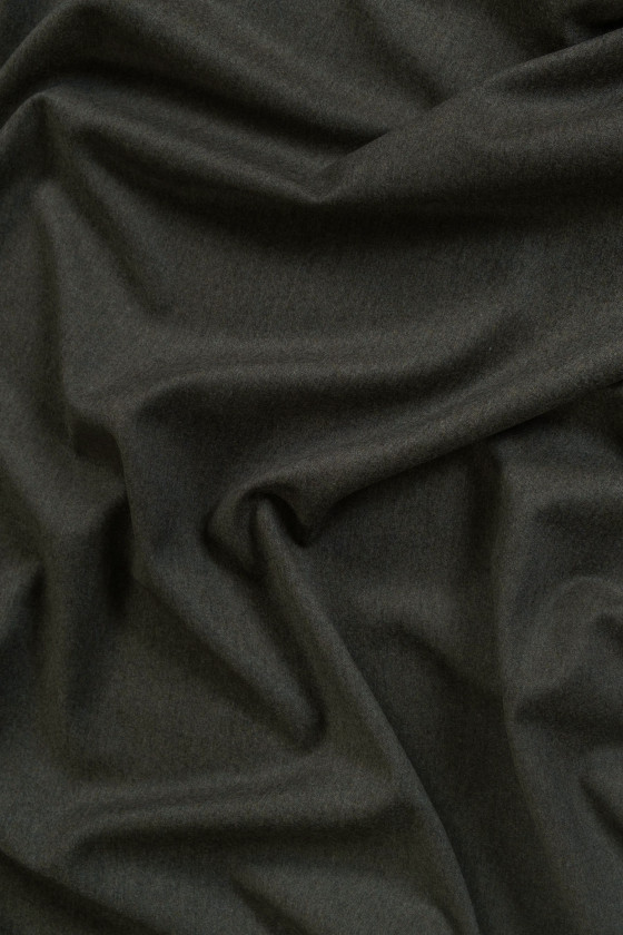 Costume italiano in lana grigio-verde - melange. Tessuto morbido, carnoso, anelastico del tipo autunno-inverno. Perfetto per cucire un costume, un abito, un pantalone, una gonna, un vestito.