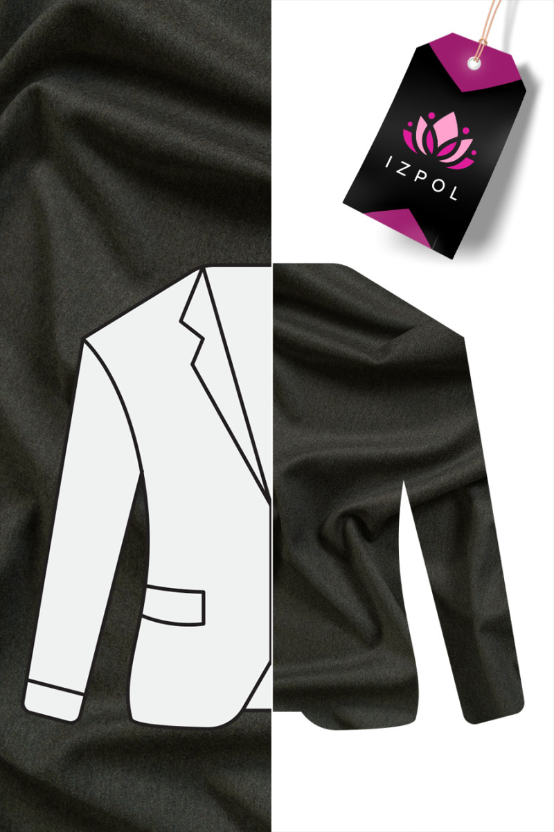 Costume italiano in lana grigio-verde - melange. Tessuto morbido, carnoso, anelastico del tipo autunno-inverno.