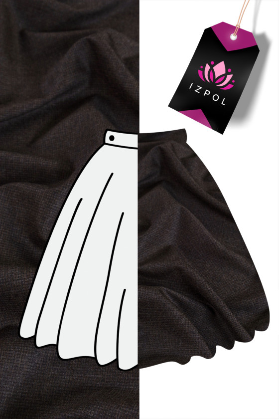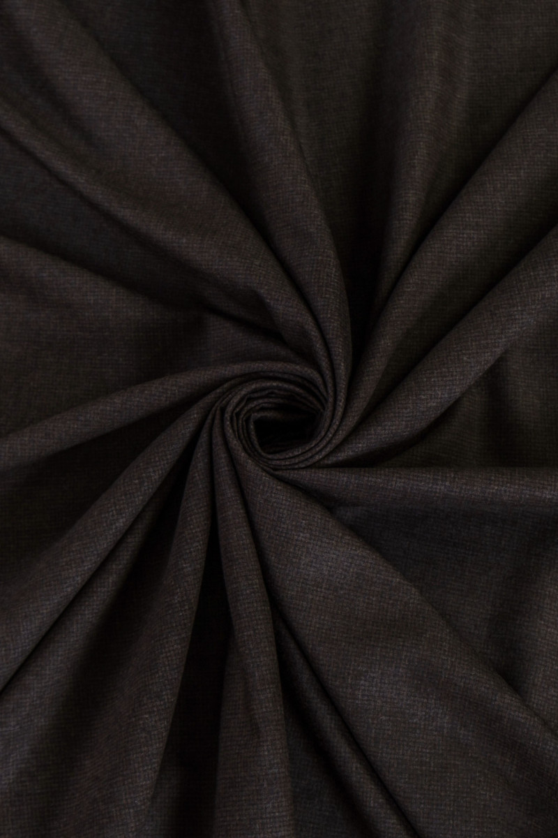 Costume italiano in lana nera e marrone con un fine motivo a quadri. Tessuto sottile, morbido, non elastico e dallo spessore classico, perfetto per cucire un abito, un costume, un vestito, un pantalone o una gonna.