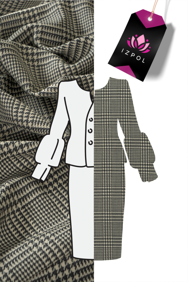 Costume italiano in lana con intreccio twill con motivo check e zampa di gallina in ecrù con grigio. Tessuto più spesso e carnoso del tipo autunno-inverno. Perfetto per cucire un costume, una gonna, un vestito o una giacca.