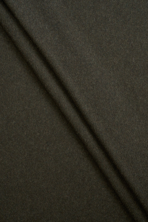 Tessuto per cappotto italiano intrecciato in lana naturale color kaki. Il tessuto è leggermente rigido, con una trama a saia. I tessuti di lana sono ideali per i capispalla (cappotto, giacca, gilet) perché riscaldano e allo stesso tempo permettono alla pelle di respirare.