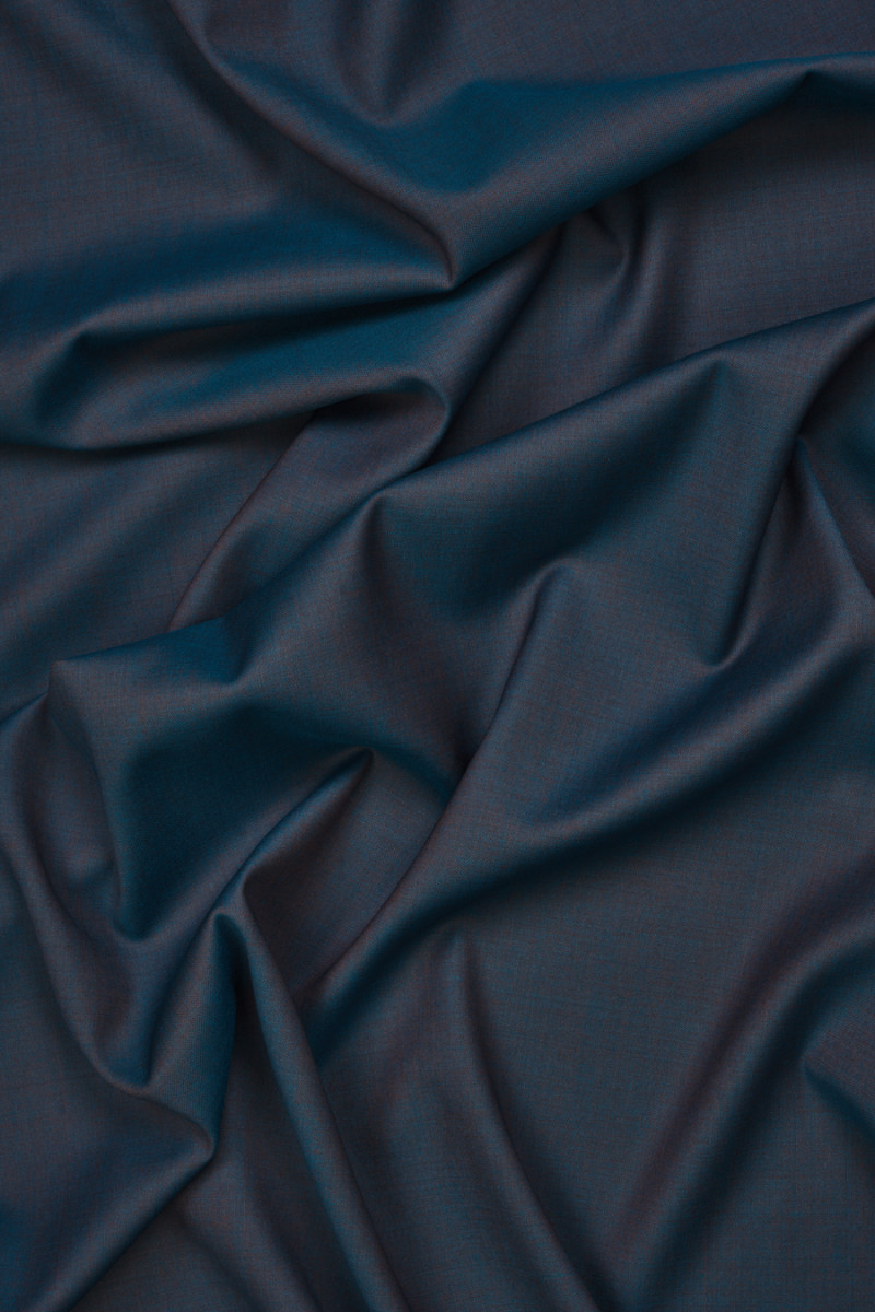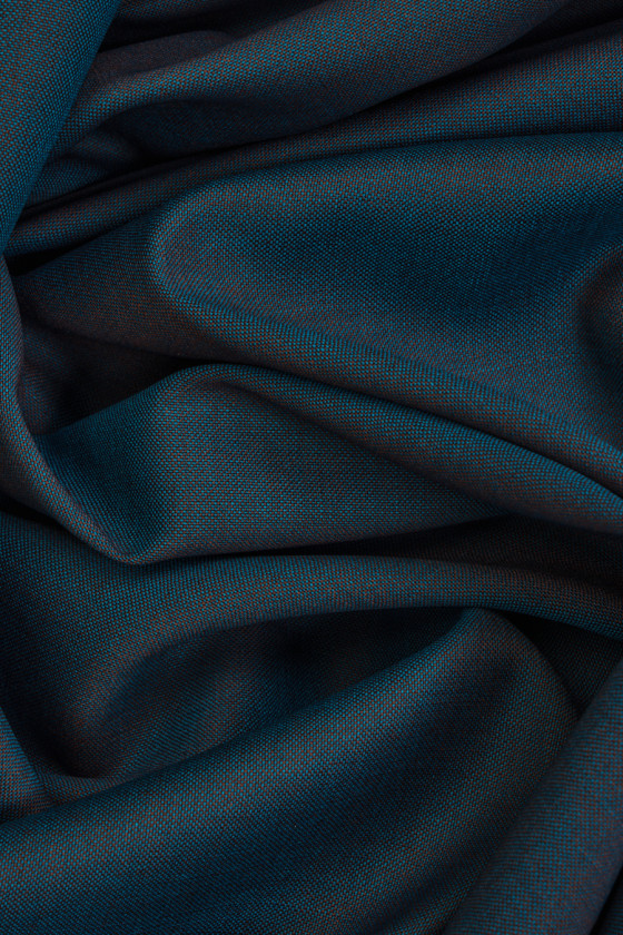 Tessuto per costumi italiani tessuto al 100% lana da due colori di fili - turchese e marrone, unico che crea un bicolore. Un tessuto a trama fitta, sottile, non elastico, morbido, delicato al tatto e opaco. Una proposta bella e classica per abiti, abiti, gonne.