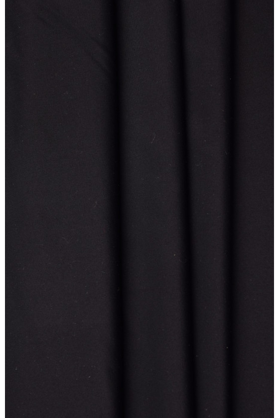Tessuto italiano a maglia elastica del tipo lycra di colore nero. Un tessuto con una trama fitta e una struttura liscia e opaca, molto elastico, ideale per le persone che amano l'abbigliamento aderente e i colori senza tempo. È perfetto per foderare ad esempio pizzi e anche per cucire biancheria intima, poiché è comodo e ad asciugatura rapida.