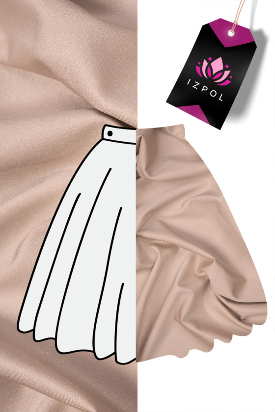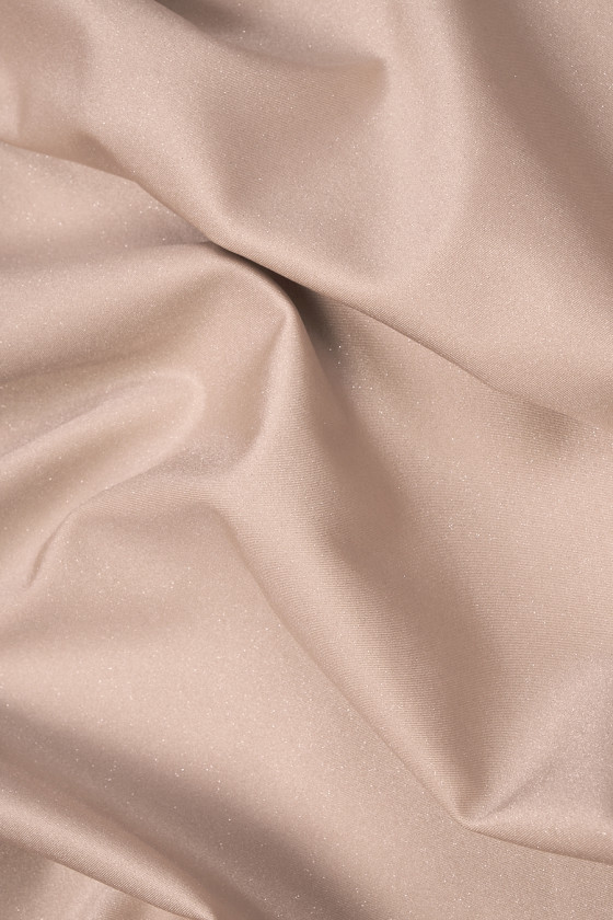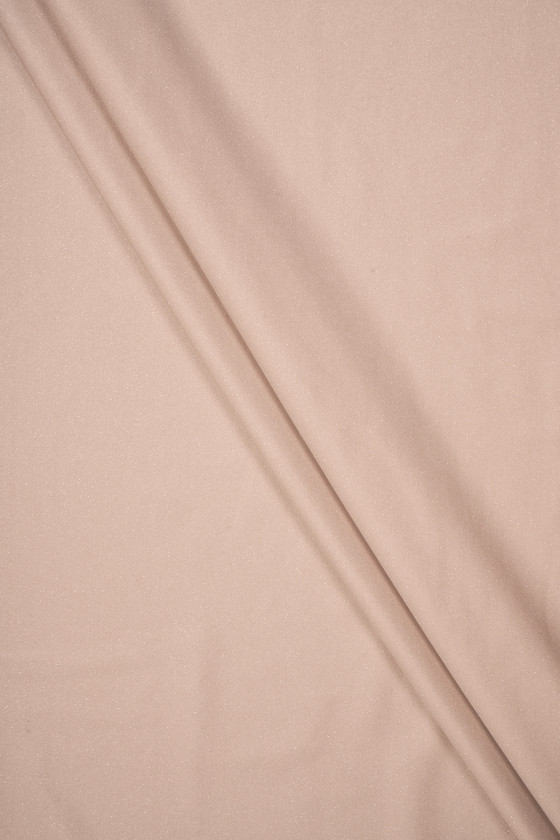 Tessuto a maglia di lycra elastica italiana in beige nude con glitter argento (non cade). Un tessuto con una trama fitta e stretta, molto elastico, ideale per le persone che amano l'abbigliamento aderente. È perfetto per cucire abiti da ballo o da sera e costumi da bagno, poiché è comodo e splendidamente lucido.