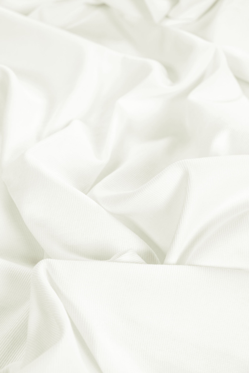 Tessuto a maglia racer in cotone italiano color crema - viene fornito in una manica larga 50 cm. Tessuto con una caratteristica trama a coste, perfetto per rifinire felpe o pantaloni della tuta.