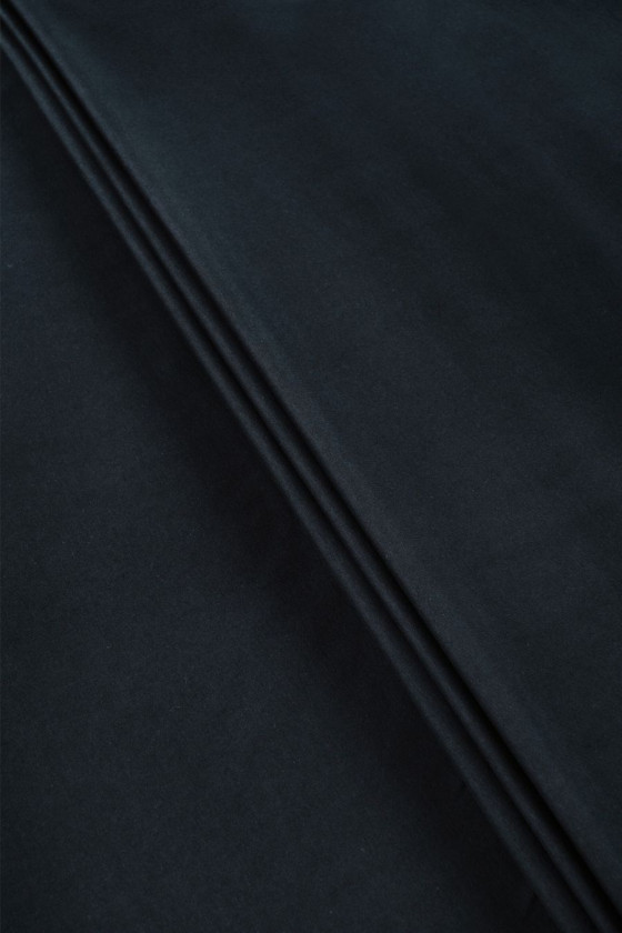 Jersey italiano di poliestere in blu navy scuro, quasi nero. Un tessuto a maglia a trama fitta, di medio spessore, dalla delicata lucentezza ed elastico. È perfetto per cucire abiti di tutti i giorni, come abiti, gonne, tuniche o felpe leggere.