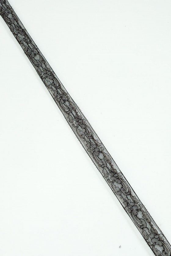 Fettuccia in pizzo italiano in nero. Sottile, delicato con motivo floreale. Perfetto per rifinire camicette, abiti, indumenti da notte.