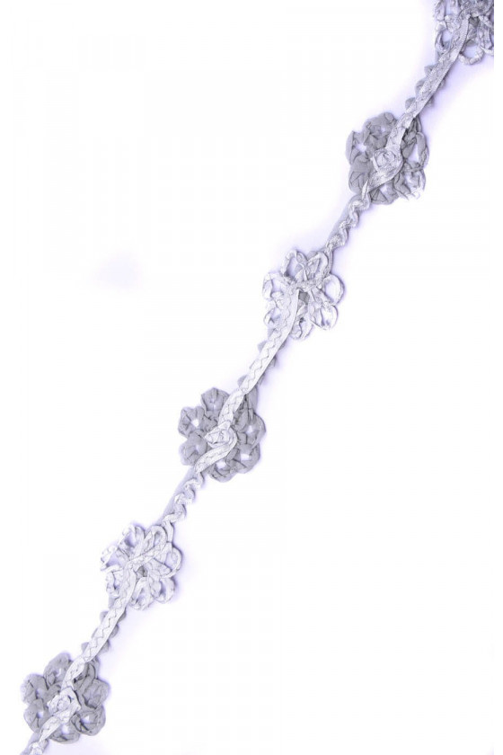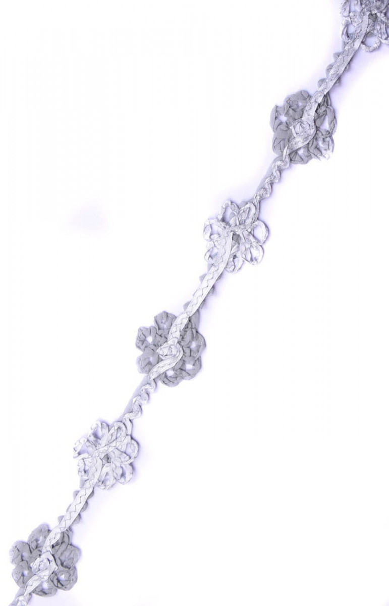 Nastro per merceria di colore grigio e argento ideale per finiture e accessori.
