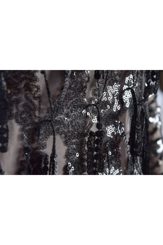 Paillettes ricamate su tulle. Inoltre, sono decorati con nappe di paillettes lunghe circa 4 cm. Perfetto per ballare e abiti di Capodanno.