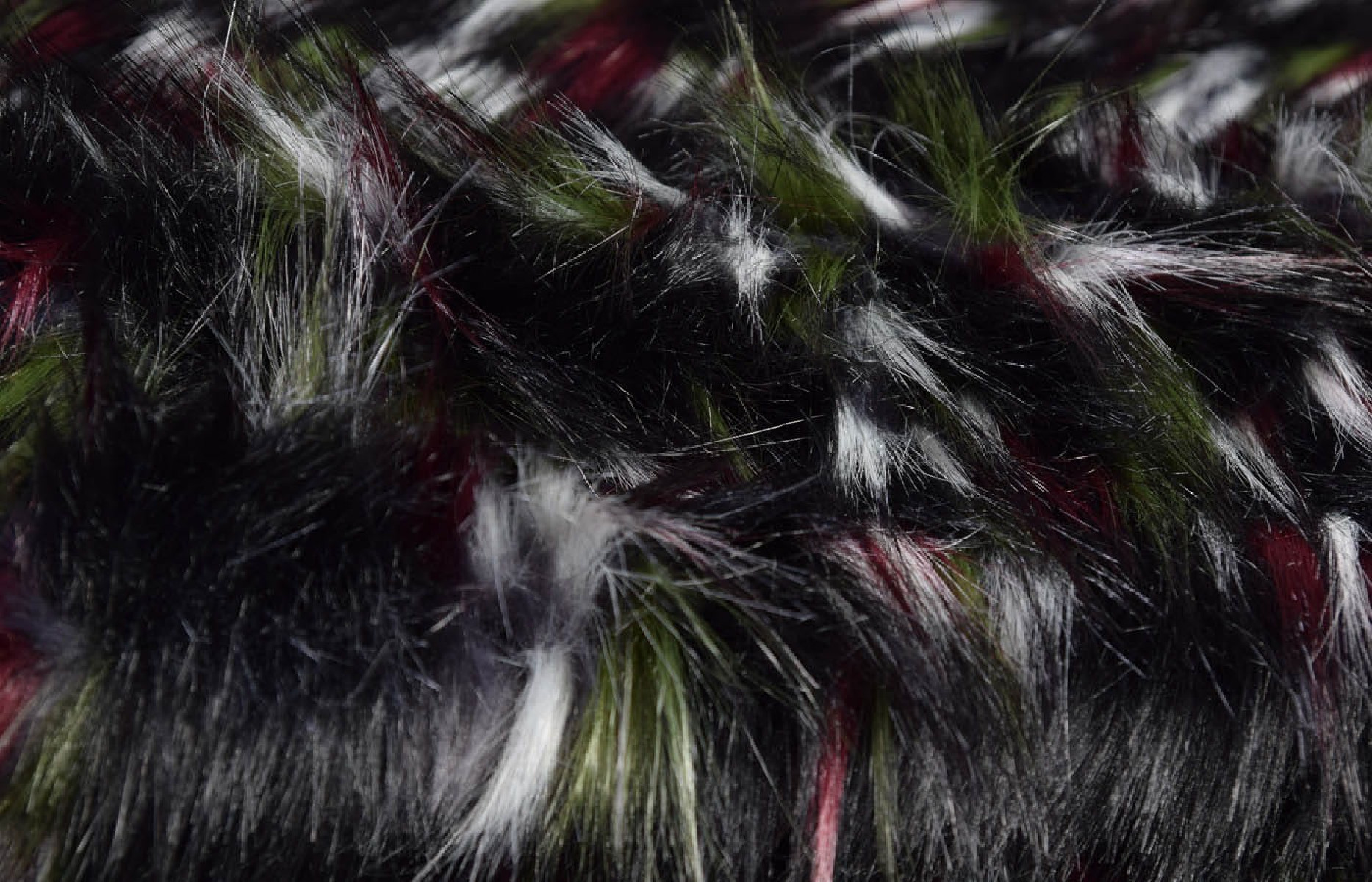 Pelliccia multicolore realizzata con fibre di poliestere che imitano perfettamente la pelliccia naturale. Piacevole al tatto. Perfetto per una giacca o un cappotto.