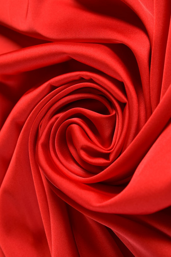 Raso di poliestere, elastico, larghezza 145 cm. Il tessuto è delicato e vellutato al tatto, con una leggera lucentezza. Può essere utilizzato per evocare abiti ariosi, camicette delicate, sciarpe, sciarpe. Può anche essere una base per chiffon o pizzi più delicati.