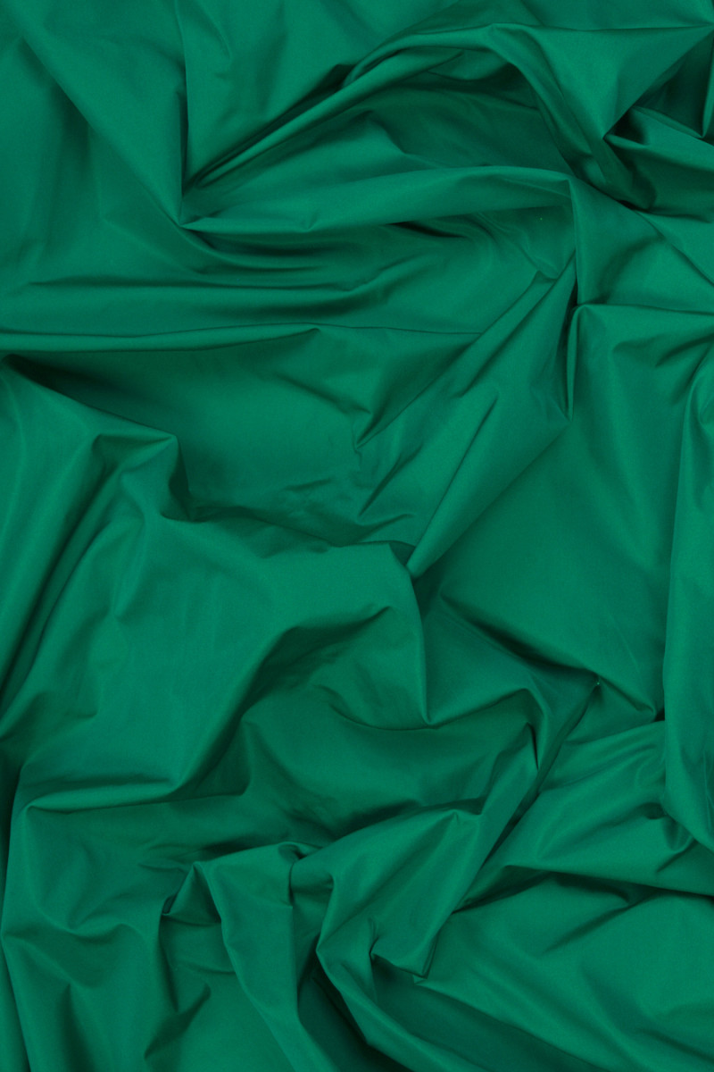 Tessuto in taffetà di poliestere italiano di colore verde più scuro. Il tessuto è sottile ma rigido, leggermente lucido.