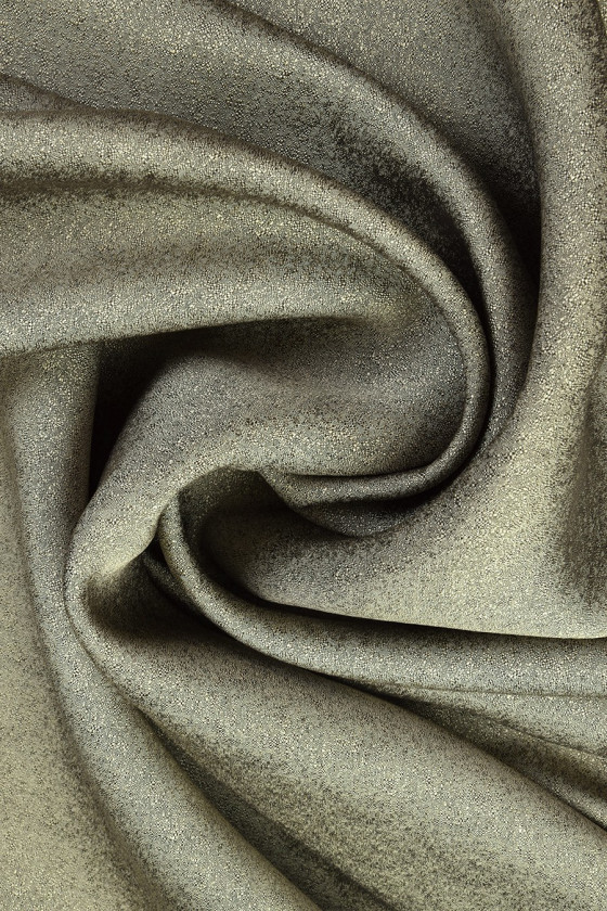 Elegante jacquard sottile di colore oliva dalla texture delicata. Il tessuto è leggermente rigido, perfetto per cucire abiti da cerimonia e gonne.