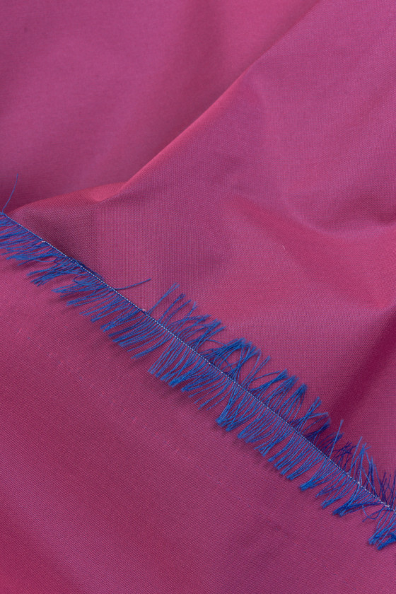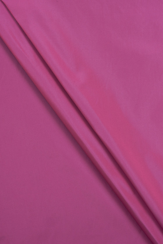 Tessuto in taffetà di poliestere italiano intrecciato da due colori di fili - rosa e blu, creando un effetto bicolore. Il taffetà è un tessuto sottile ma rigido, rifinito con una delicata lucentezza. Perfetto per cucire un abito, una camicetta, una camicia, una gonna.