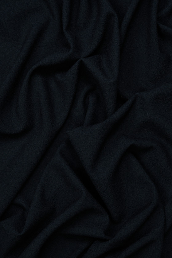 Tessuto italiano con trama georgette di colore blu navy scuro con l'aggiunta di elastan. Il tessuto è morbido, elastico, opaco e ha una delicata trama in georgette. Una proposta classica da cui è possibile creare abiti, gonne, giacche e costumi.