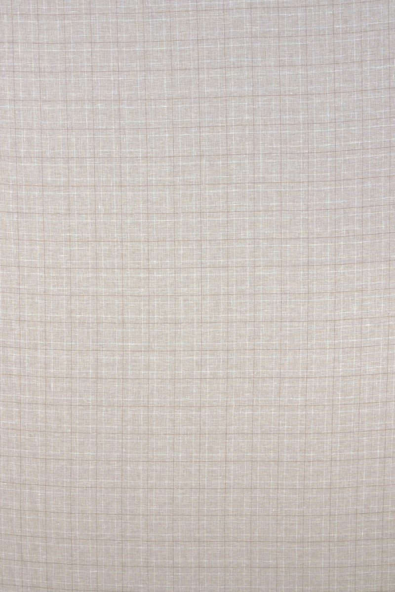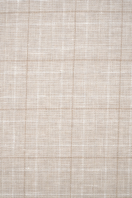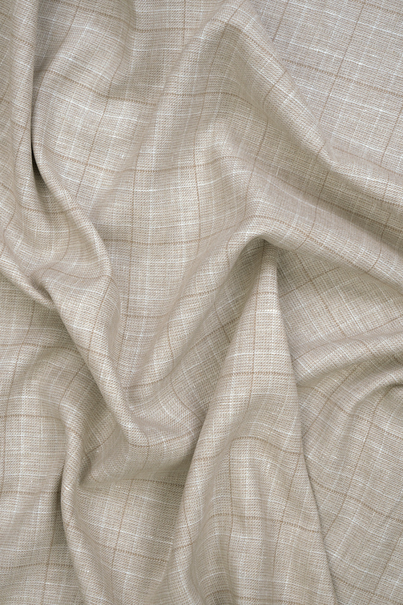 Tessuto italiano misto lino, poliestere, lana e viscosa con un delicato motivo a quadri sui toni del beige. Il tessuto è sottile, non elastico, con una trama leggermente larga, ma coprente bene. Una proposta classica per pantaloni, giacche, abiti, gonne e pantaloncini.