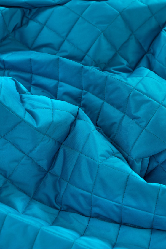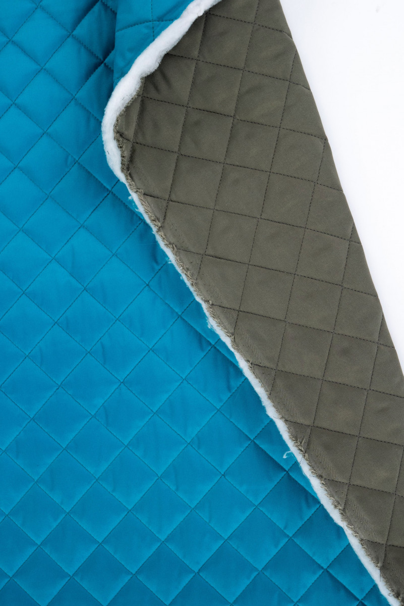 Tessuto per giacca italiana con motivo trapuntato (5 cm) - double-face, da un lato in blu ottanio e dall'altro in kaki. Il tessuto è imbottito con isolamento in poliestere.