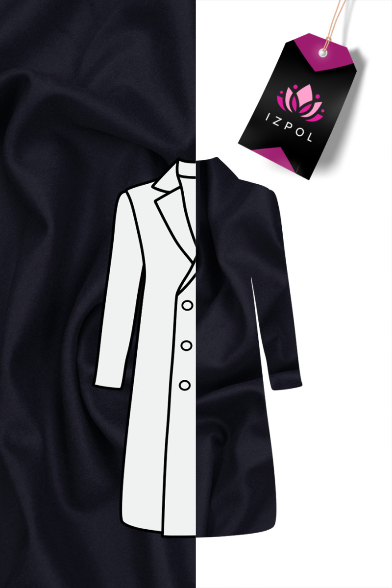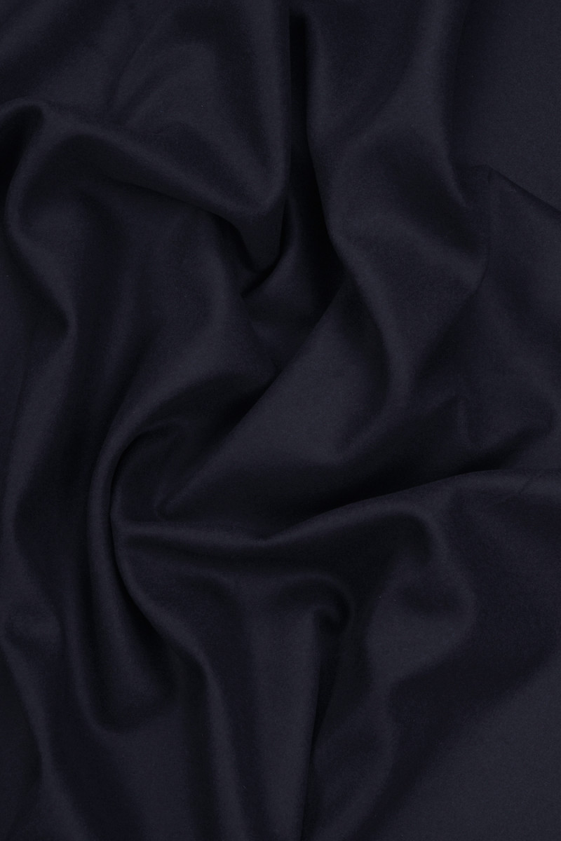 Cappotto italiano in lana con una miscela di poliammide in blu navy scuro. Un tessuto molto carnoso e nobile con una delicata trama in twill e una struttura liscia, perfetto per cucire un cappotto, una giacca o un gilet caldo autunno-inverno. La combinazione di fibre naturali con fibre sintetiche rende il tessuto caldo, ma allo stesso tempo resistente e durevole. Il bellissimo colore classico rende il materiale senza tempo e sempre alla moda.