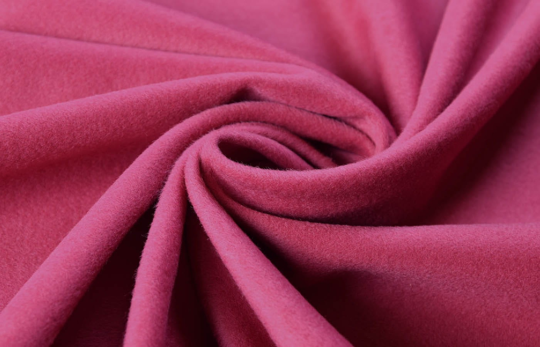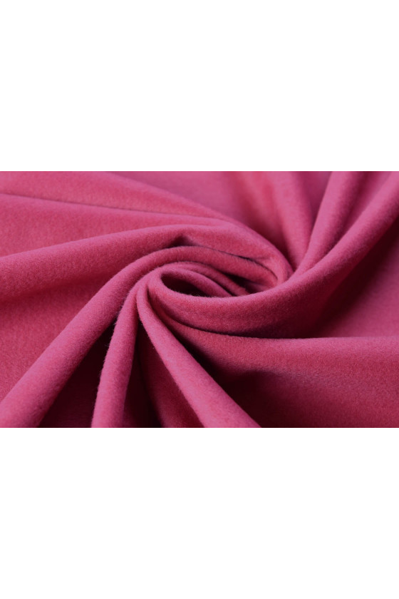 Tessuto per cappotto italiano in lana vergine con l'aggiunta di cashmere e poliammide in rosa scuro. I tessuti di lana sono ideali per i capispalla (cappotto, giacca, gilet) perché riscaldano e allo stesso tempo permettono alla pelle di respirare. L'aggiunta di cashmere gli conferisce proprietà isolanti ancora migliori, poiché il cashmere è più caldo della lana di pecora.