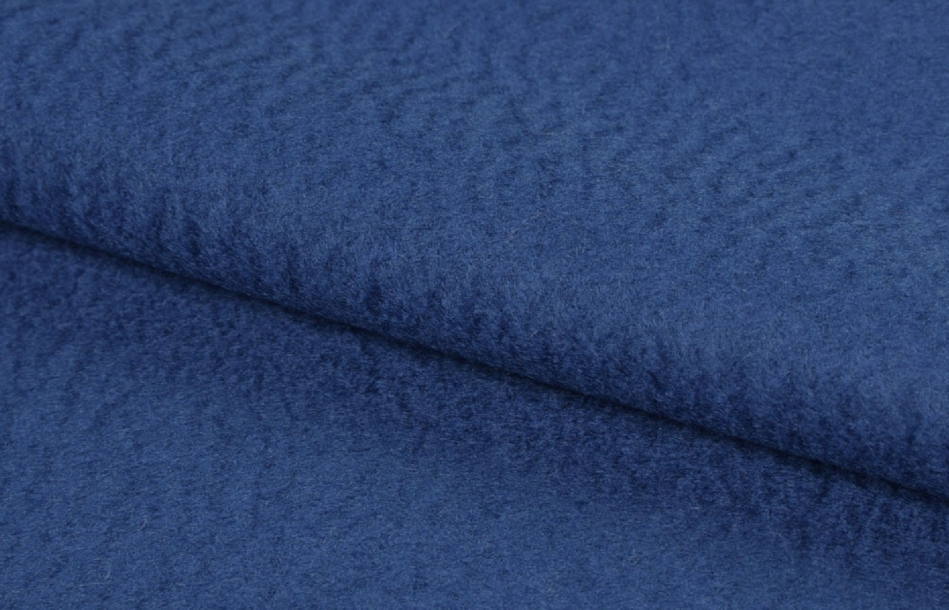 Tessuto cappotto italiano tessuto in lana naturale con l'aggiunta di cashmere in blu - denim. I tessuti di lana sono ideali per i capispalla (cappotto, giacca, gilet) perché riscaldano e allo stesso tempo permettono alla pelle di respirare. L'aggiunta di cashmere gli conferisce proprietà isolanti ancora migliori, poiché il cashmere è più caldo della lana di pecora.