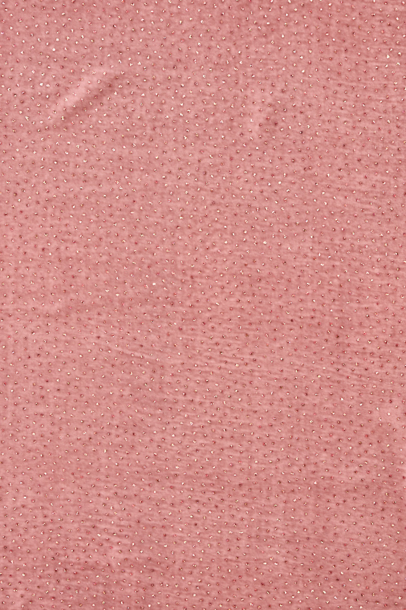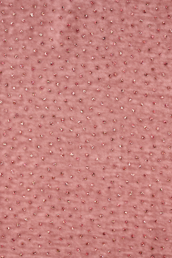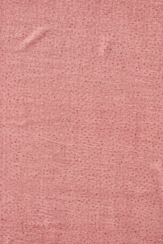 Italiano, esclusivo velluto rosa cipria decorato con glitter multicolor. Il tessuto è morbido, fluido, non elastico, sottile ma opaco. Drappeggia magnificamente e la decorazione glitterata aggiunge un aspetto unico al tessuto. Una proposta meravigliosa per creare un abito formale, una gonna o una camicetta.