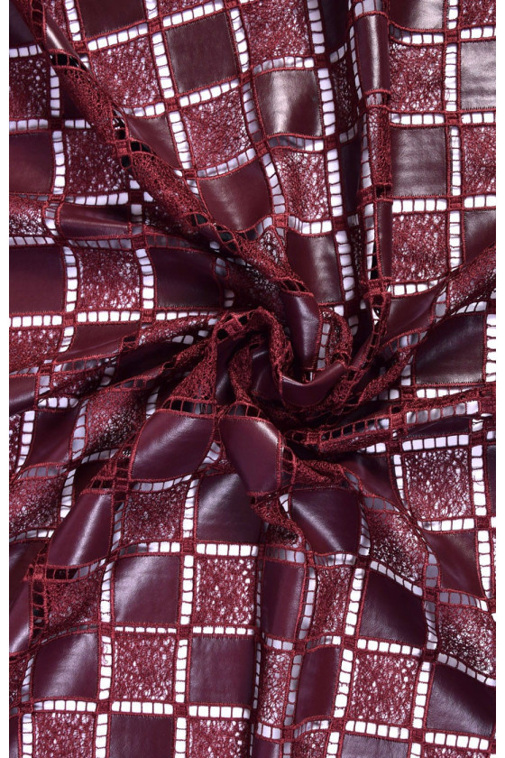 Ecopelle bordeaux con motivo checkerboard. Rifinito con un dente su entrambi i lati.
