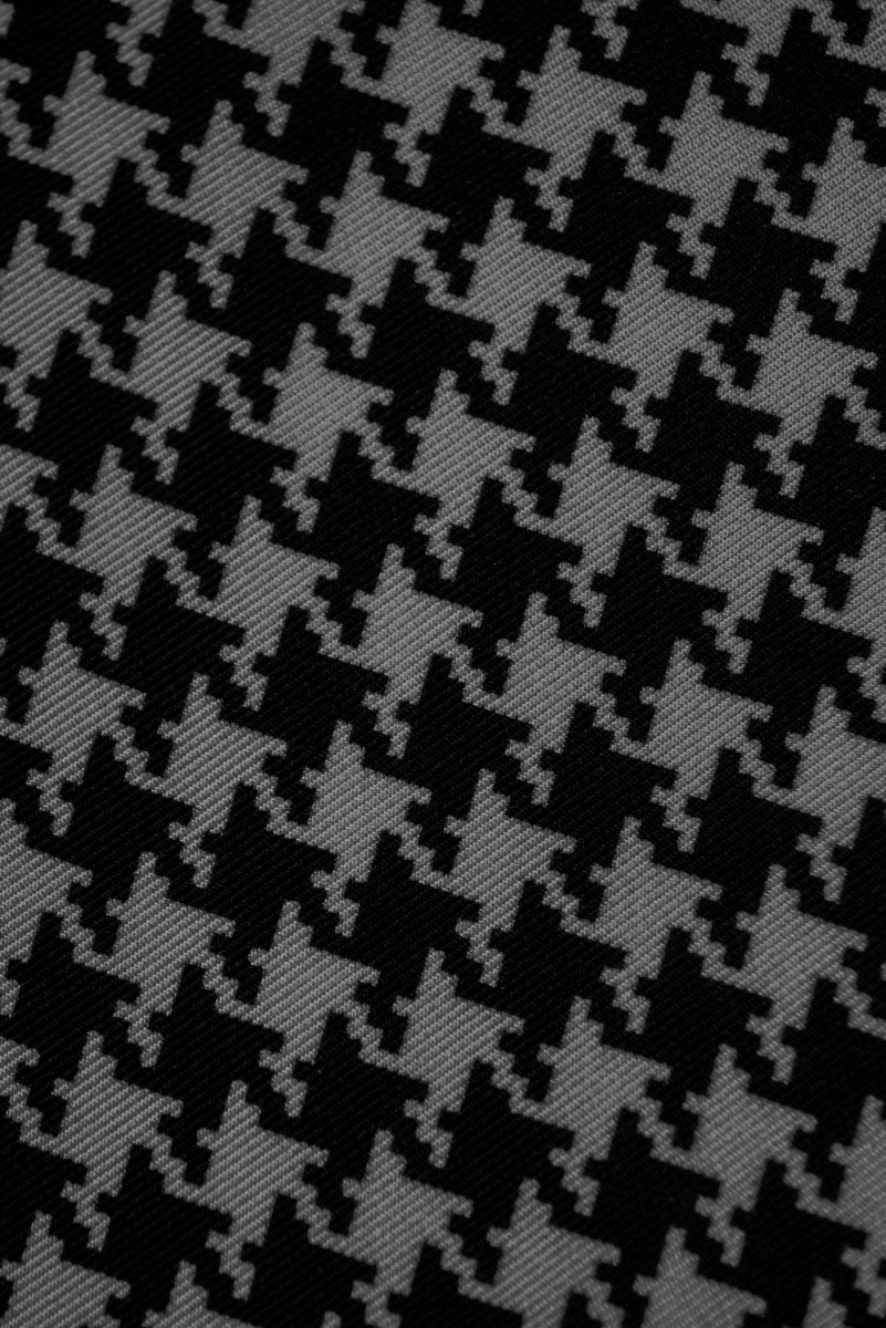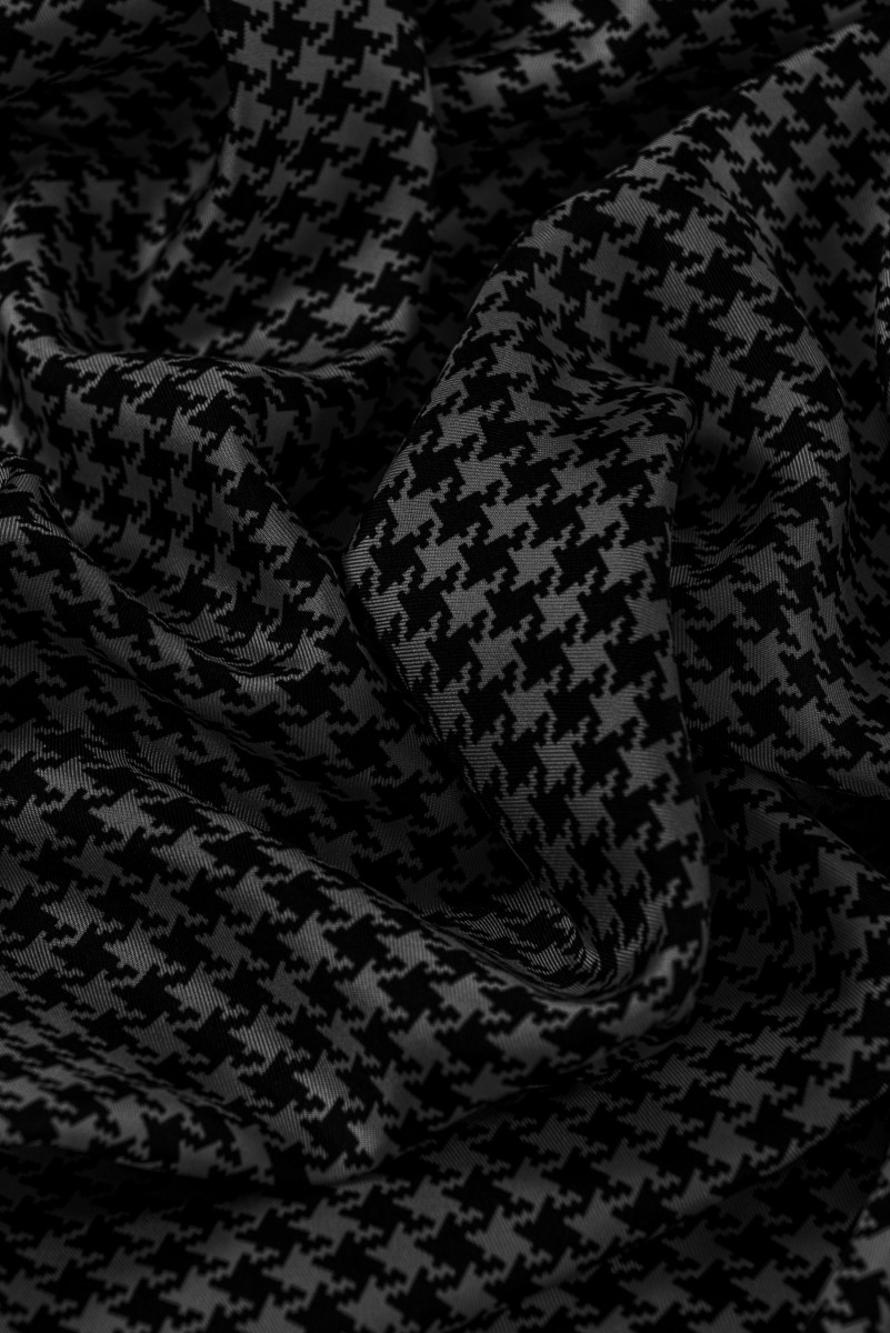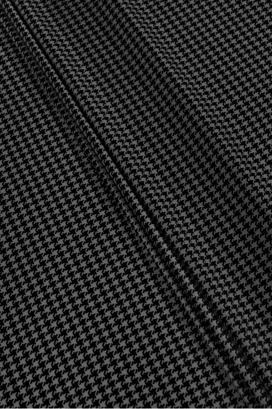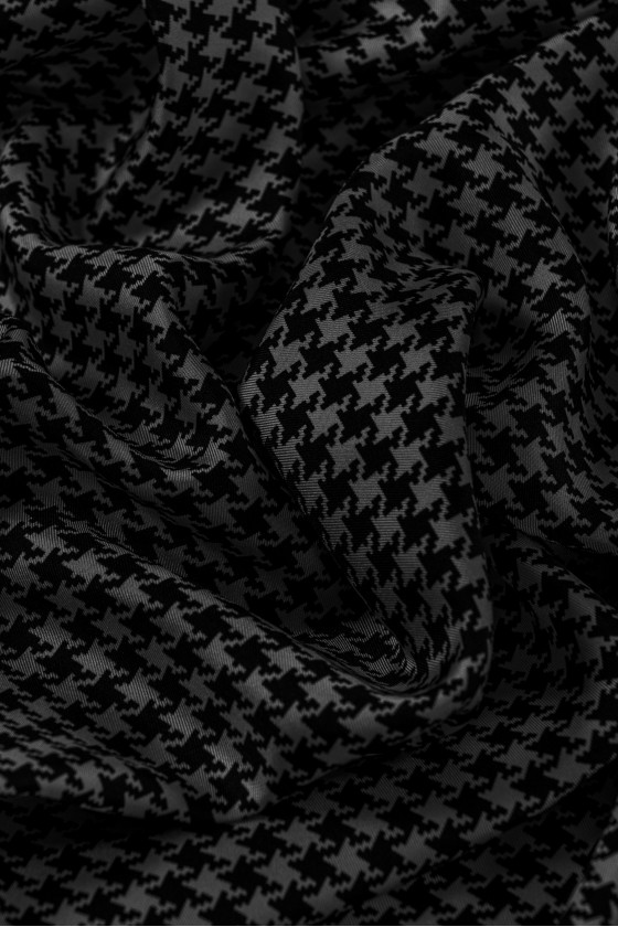 Tessuto jacquard italiano con zampa di gallina grigia e nera (0,5 cm). Tessuto più sottile, rigido, non elastico e dalla caratteristica lucentezza.