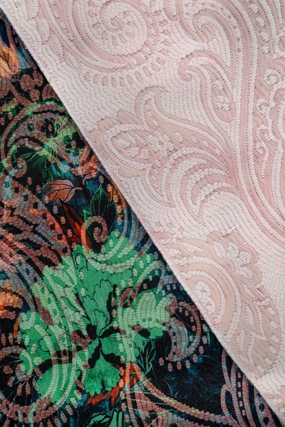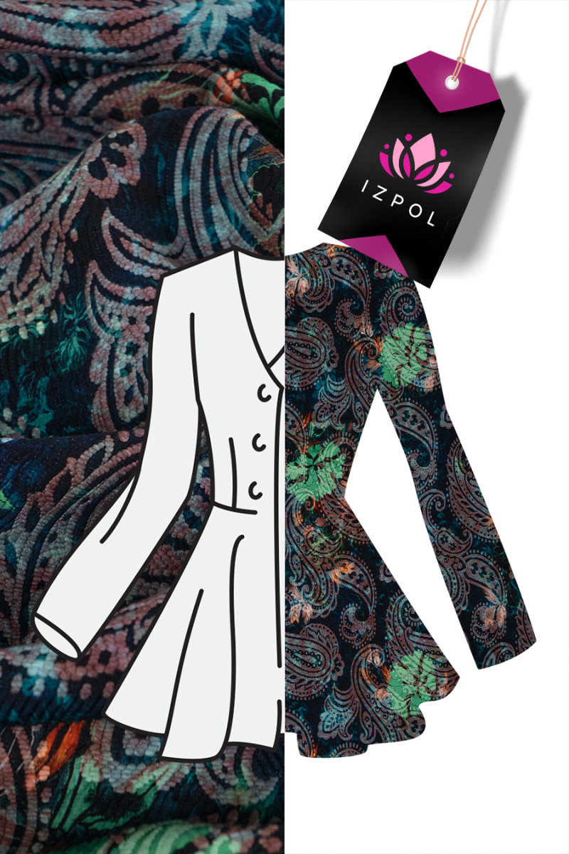 Il jacquard è un materiale a doppia faccia, il più delle volte con motivi leggermente lucidi, grandi e impressionanti. Il colore del tema cambia a seconda del lato da cui proviene la luce. Sono caratterizzati non solo da modelli e struttura unici, ma anche da un'elevata durata e resistenza ai danni. Il jacquard è ottimo per abiti, giacche, cappotti o costumi. Ogni outfit cucito da esso sarà molto elegante e unico. A seconda del tipo di tessuto che scegli, funzionerà bene per gli abiti da sera, ma anche per l'uso quotidiano.