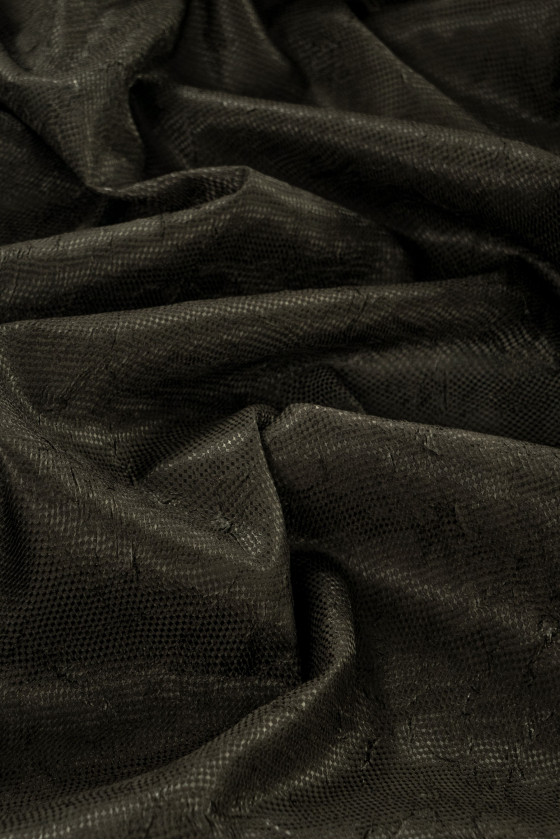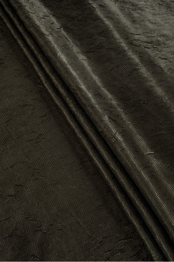 tessuto jacquard italiano costumi verde marcio. Tessuto sottile, rigido, elastico con un'interessante struttura stropicciata. Nota: il tessuto è largo solo 100 cm!