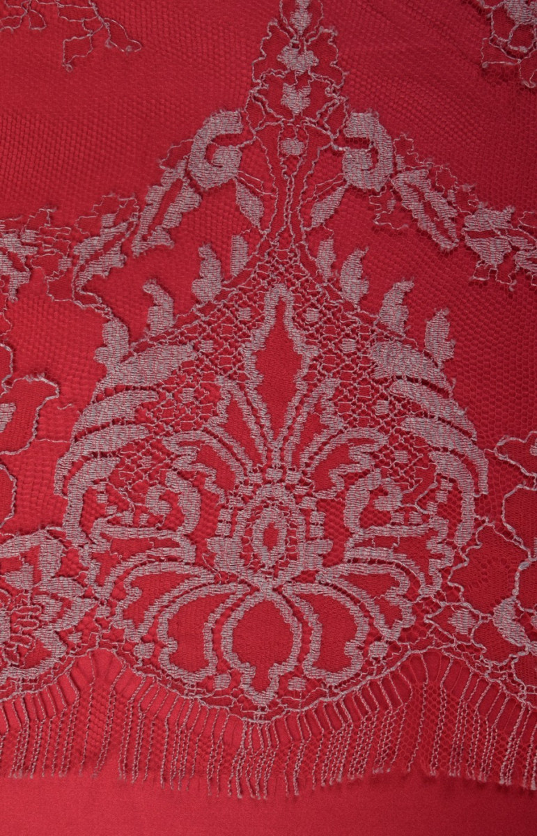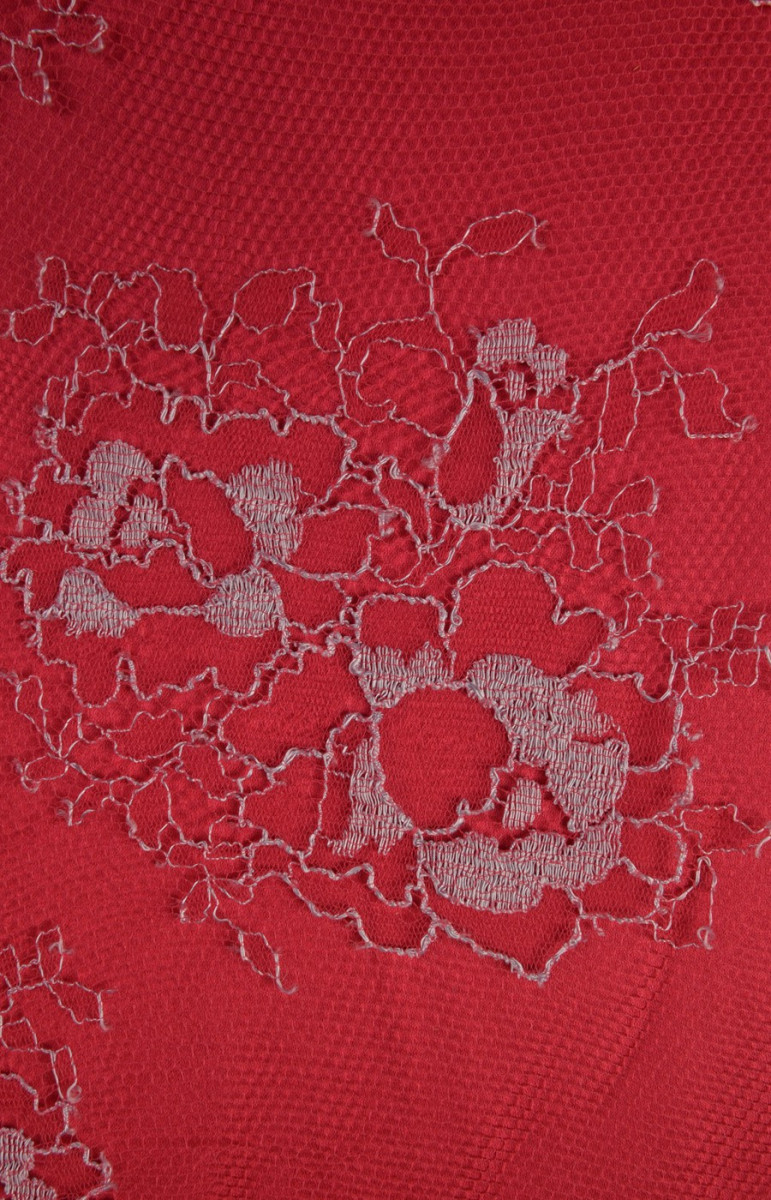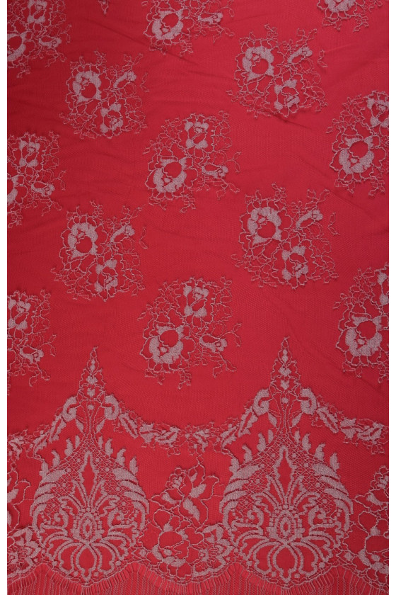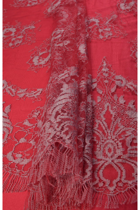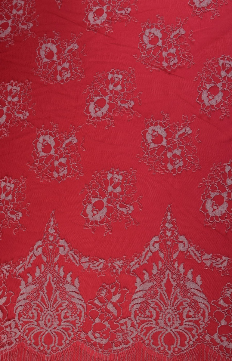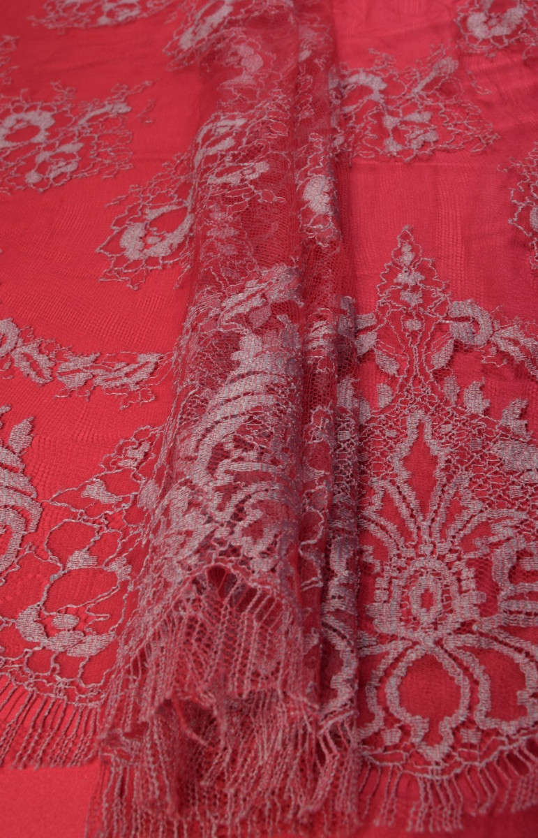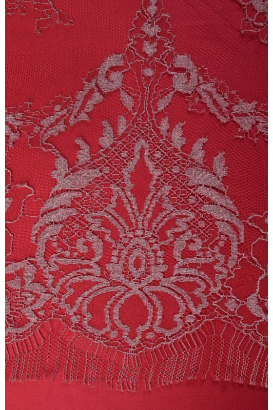 Bella corona rifinita su entrambi i lati con un dente rosso e tortora. Perfetto per camicette e abiti. Di seguito sono riportati i tessuti che si abbinano al pizzo nel colore.