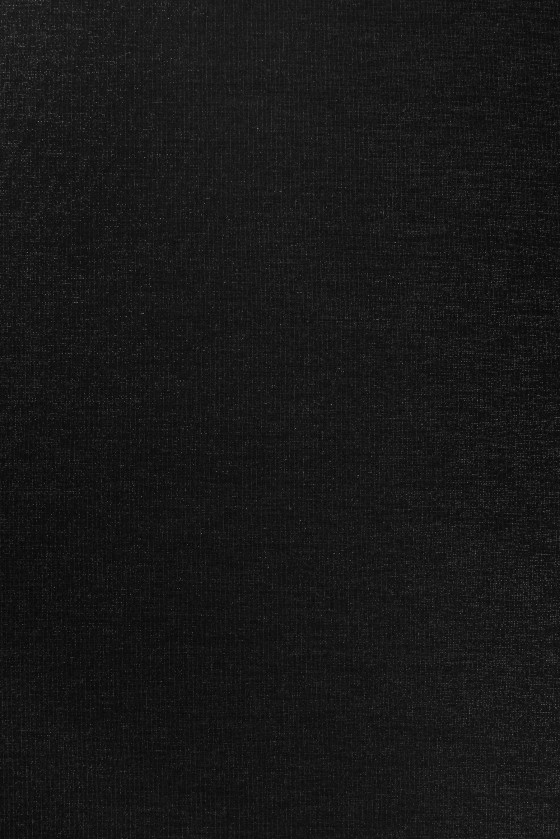 Costume italiano in lana nera a righe larghe 0,5 cm, splendidamente decorato con filo di lurex argento. Tessuto morbido, carnoso, non elastico, di tipo autunno-inverno.