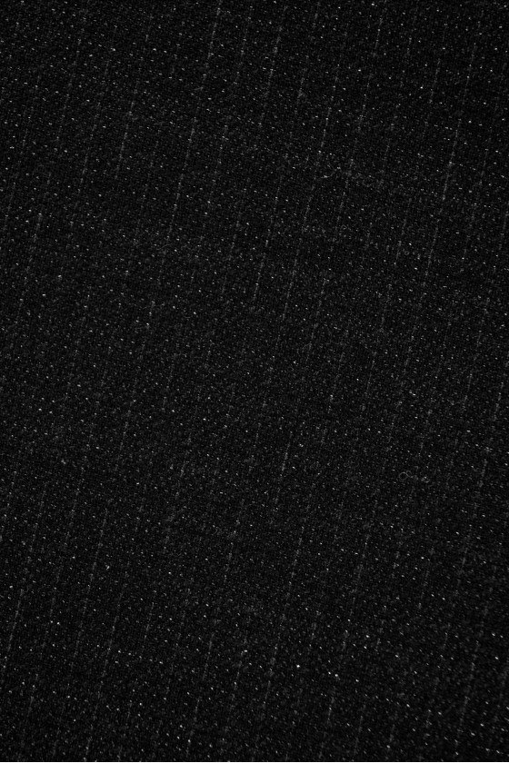 Costume italiano in lana nera con strisce larghe 0,5 cm, splendidamente decorato con filo di lurex argento. Tessuto morbido, carnoso, non elastico, del genere autunno-inverno - perfetto per cucire un costume, un abito, pantaloni, gonna, vestito.