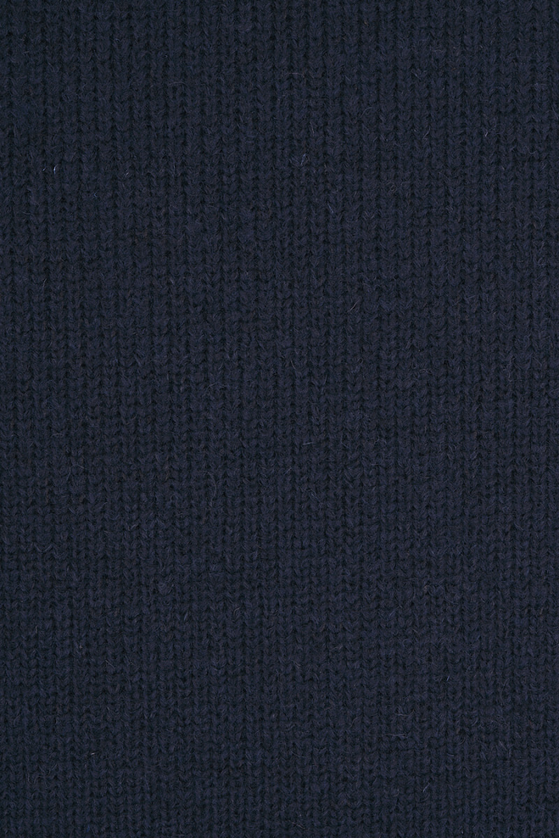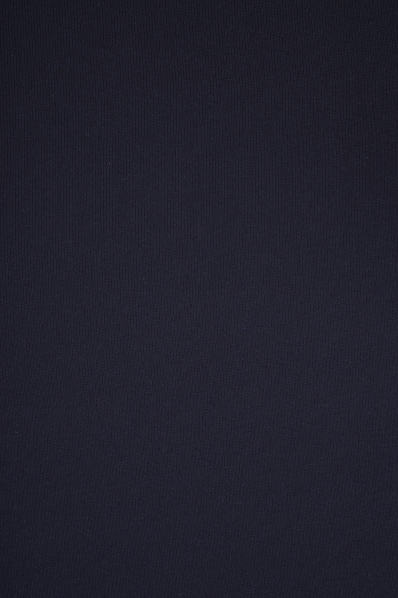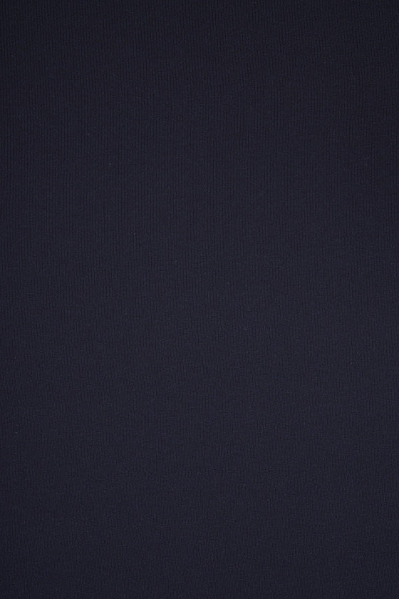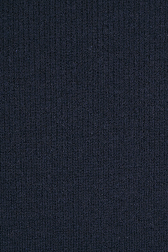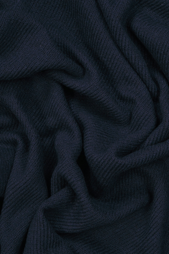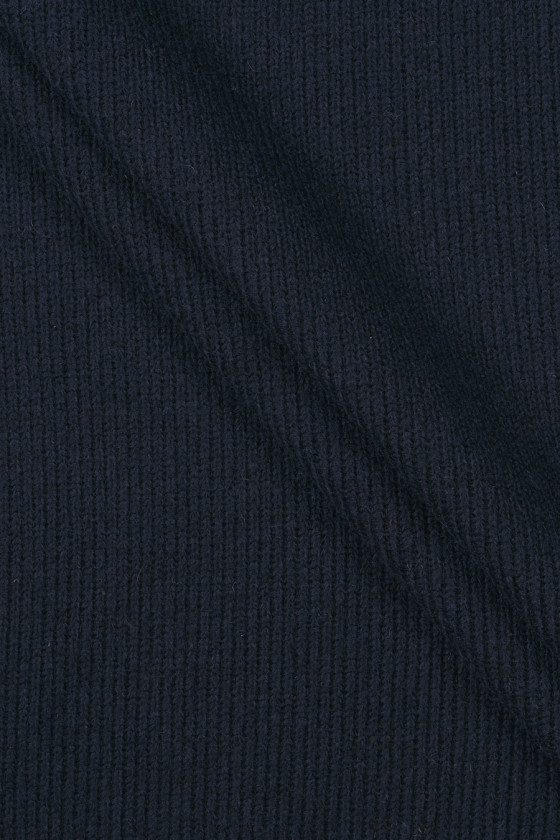 Italiano, maglione spesso in lana di colore blu navy scuro. Un tessuto "doppio" con una trama a coste da un lato (0,5 cm) e una liscia dall'altro, simile alla lana cotta a vapore.