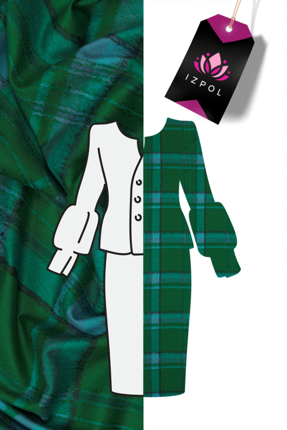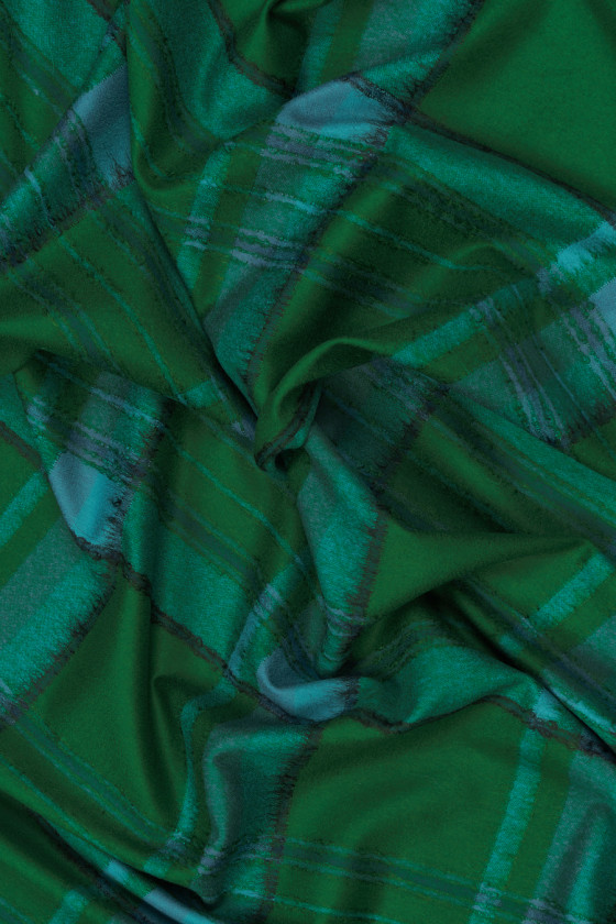 Costume di lana italiana con una miscela di mohair, un grande motivo a quadri (circa 10 cm) in verde e blu. Un tessuto del tipo autunno-inverno con pelo delicato, di medio spessore, non elastico - perfetto per cucire un costume, un vestito, una gonna, una giacca.