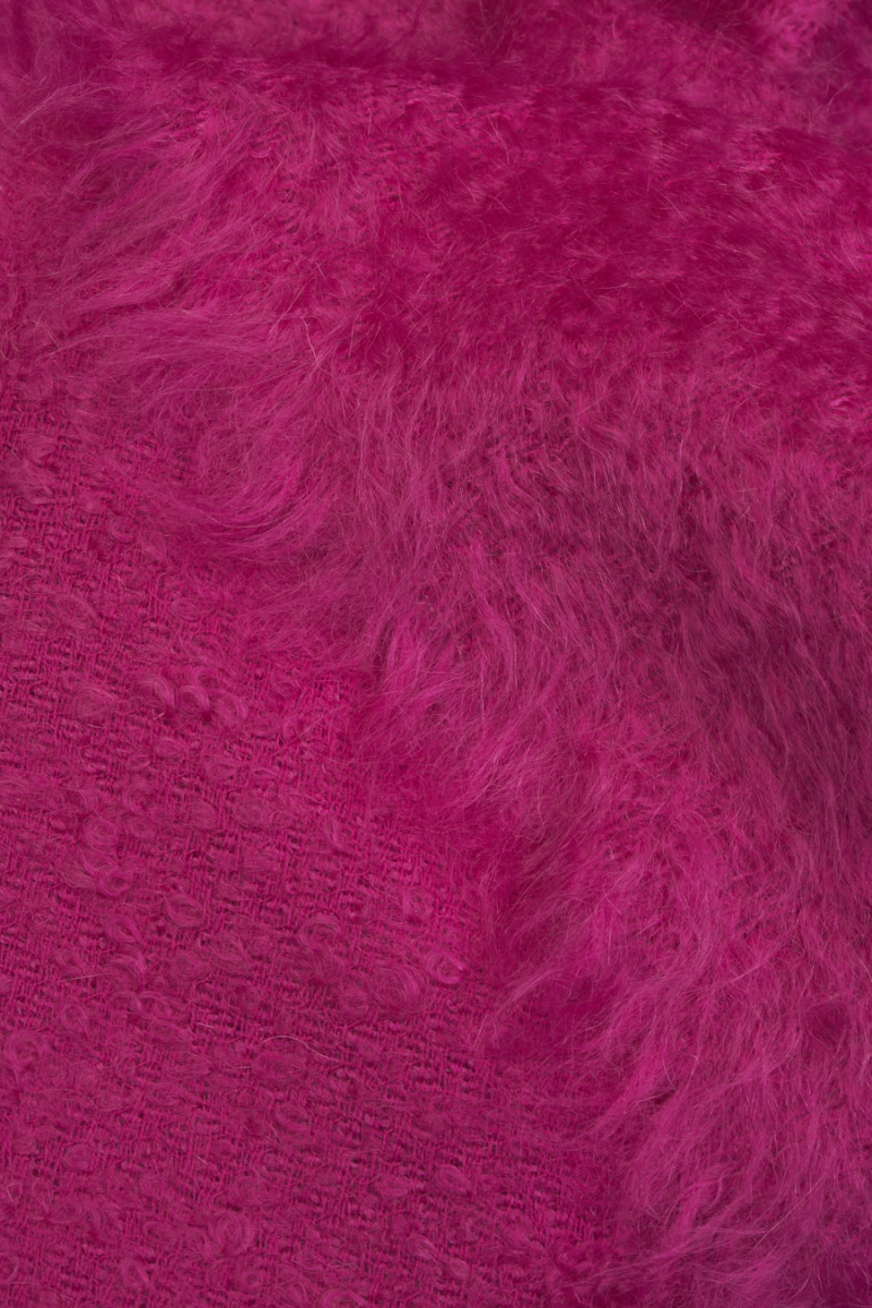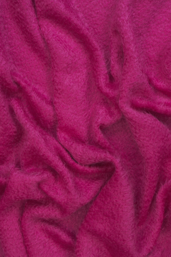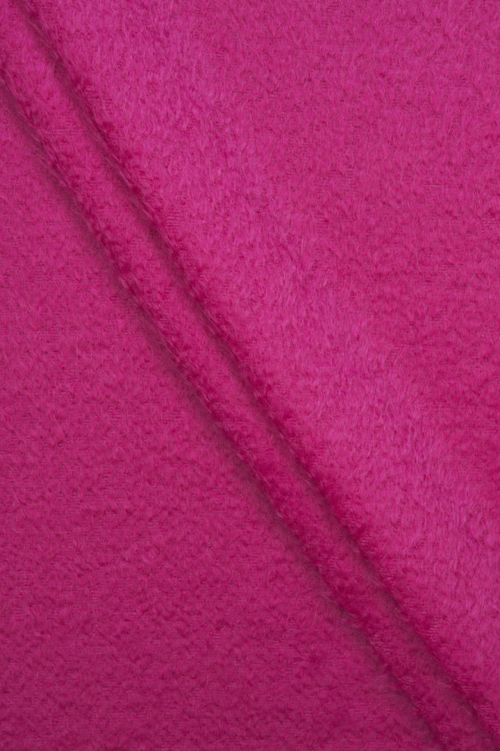Tessuto per cappotto italiano in rosa. Un tessuto morbido con una peluria caratteristica e distinta, intrecciata in lana naturale e mohair. È perfetto per capispalla come cappotto, giacca, gilet. Si consiglia il lavaggio a secco.