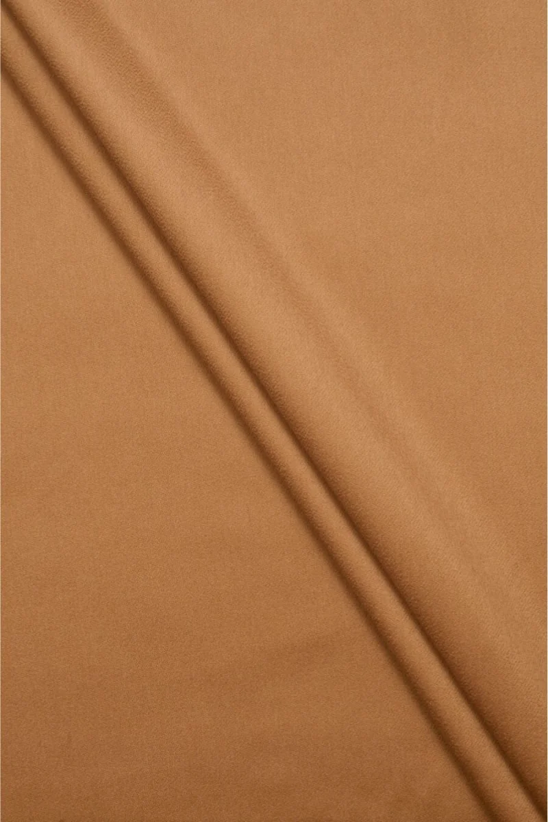 Tessuto cappotto italiano con l'aggiunta di cashmere color cammello. Il tessuto è morbido, anelastico e carnoso. È ideale per i capispalla (cappotto, giacca, gilet) perché riscalda e allo stesso tempo permette alla pelle di respirare. Si consiglia il lavaggio a secco.