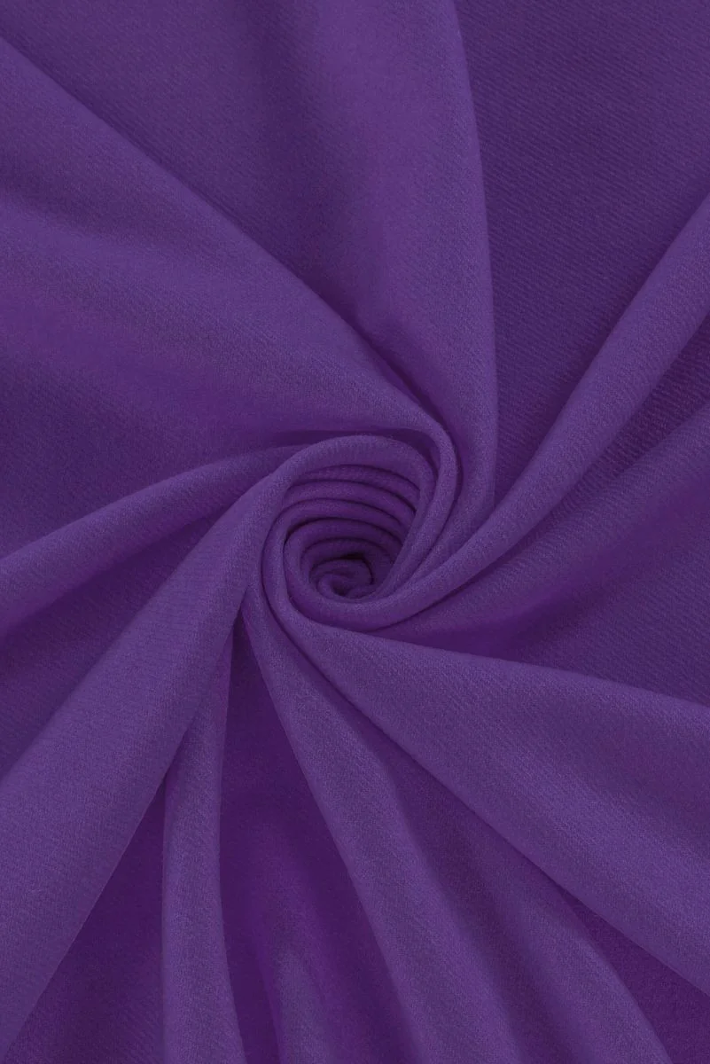Tessuto italiano per costumi realizzato al 100% in lana naturale in viola. Il materiale ha una chiara trama al sergo, è più spessa rispetto al tipo di flanella. È perfetto per cucire abiti autunnali e invernali come vestito, gonna o pantaloni. Una proposta fantastica per chi apprezza buoni tipi di tessuti.