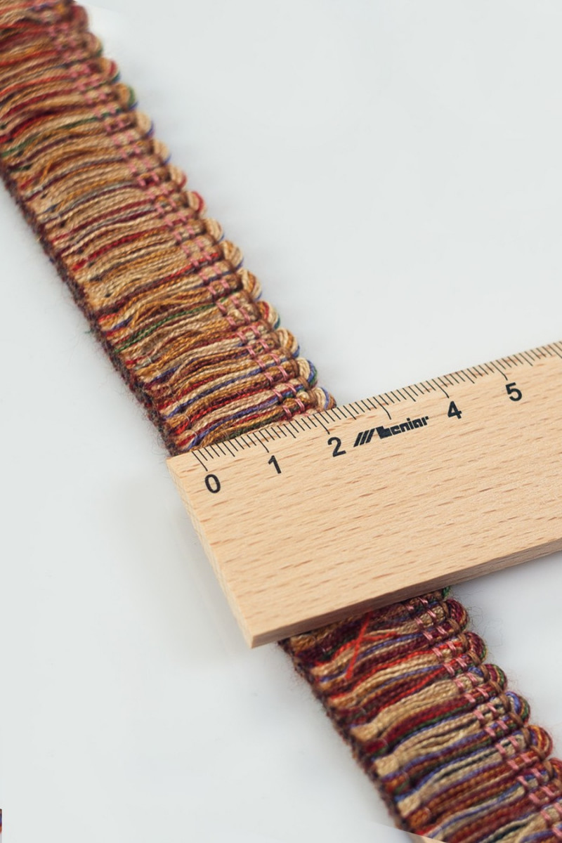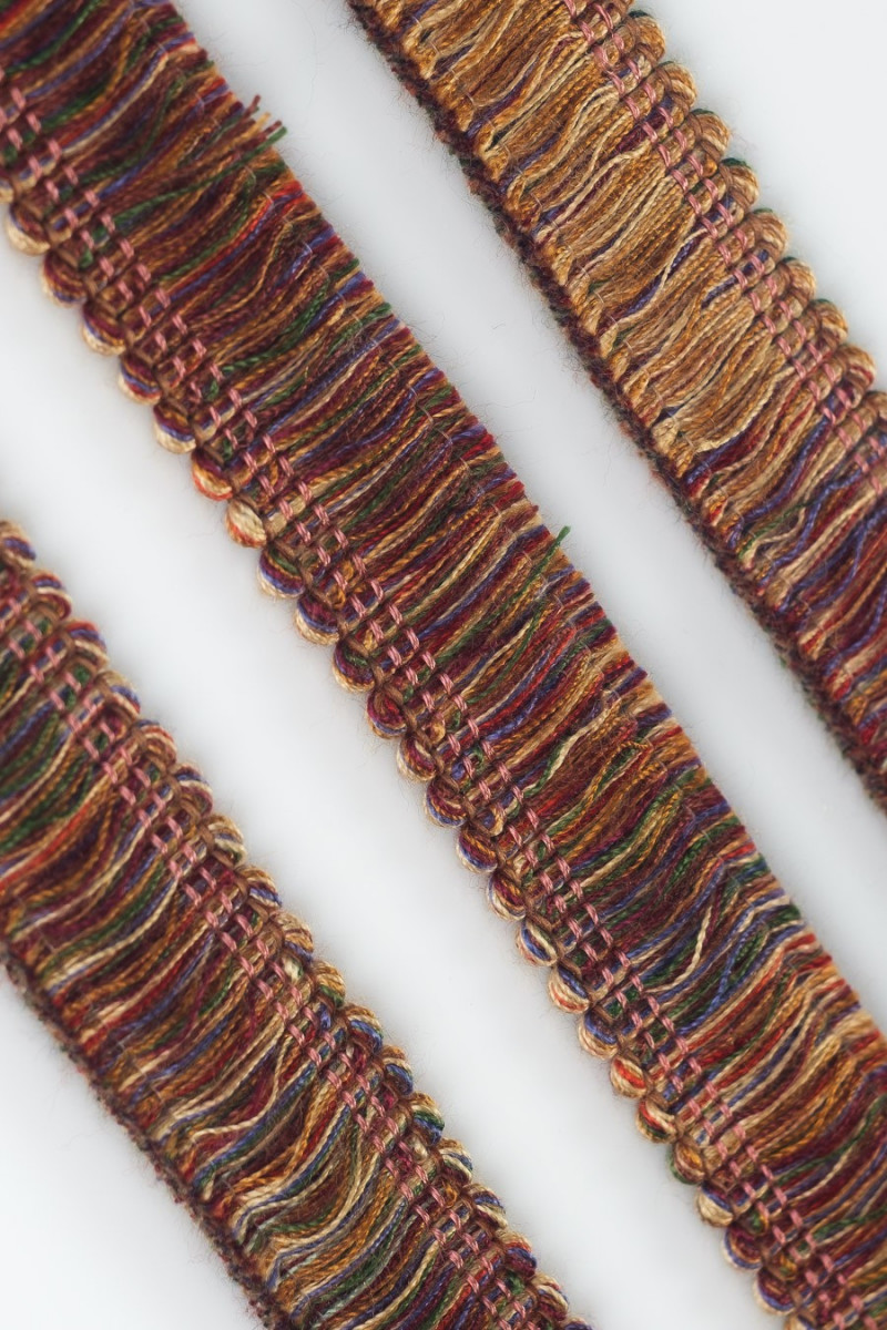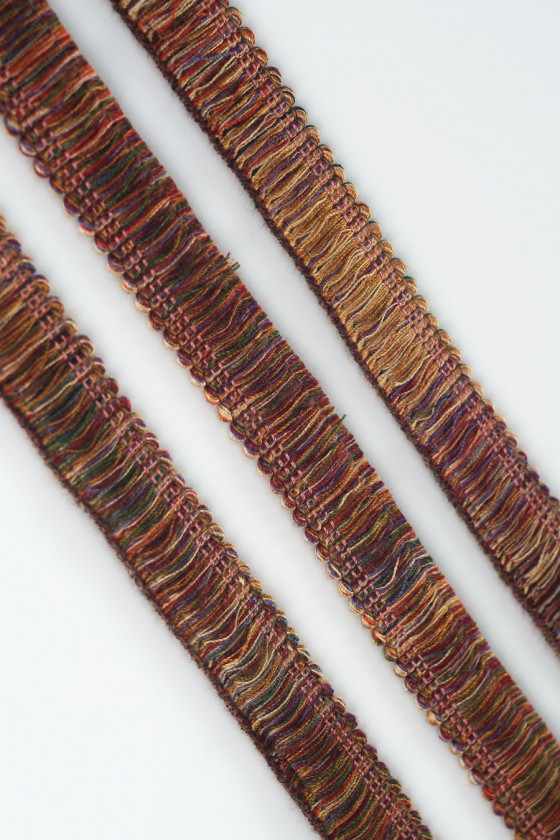 Fettuccia italiana più spessa a forma di nappine colorate (estrarre il filo inferiore) ideale per i tessuti dei costumi chanel. Larghezza nastro: 2,5 cm.